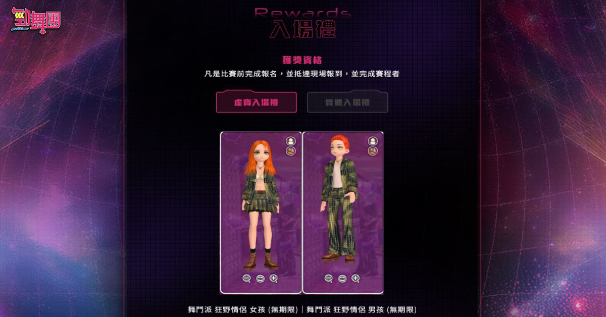 本賽事不只前 3 名可獲得獎金 16,000 元至 36,000 元、自選時裝一件、虛寶「王者榮耀 榮譽尊爵皇冠」,第 4~6 名也有「四方舞神獎」,以及第 7~18 名的「台灣各區好手獎」,獎勵包含自選時裝1件或友情設計圖時裝 1 件、獎金 4,000 元及 1,000 元、活動點數 4,000,還有神秘的「勁舞團紀念大禮包」!