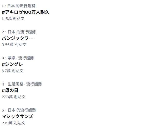 hashtag「#アキロゼ100万人耐久」上了日本流行趨勢