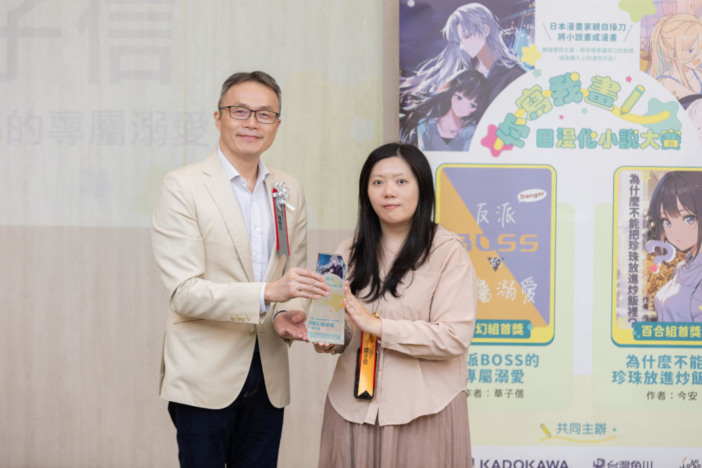 典禮現場有主辦方台灣角川總經理陳威光、數位事業群營運長陳佳聰,以及出版事業群總監呂慧君親臨現場,向兩位得獎者頒授榮耀,並對其創作成果表達高度肯定與期待。