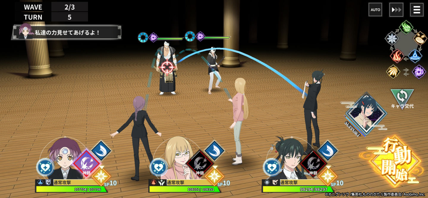 而在本作戰鬥方面將會採用回合制的指令選擇方式來進行,玩家除了一般攻擊外,還可以活用各角色各自獨特的強化技能「秘儀」雨必殺技「神髓」來進行戰鬥。而隨著玩家不斷攻擊,敵人的 BP 量表將會減少,一旦歸零,即可讓敵人陷入兩回合內無法行動的「Break」狀態,玩家可以活用這點來制訂戰略,讓自己在跟強敵的戰鬥中更加得心應手。