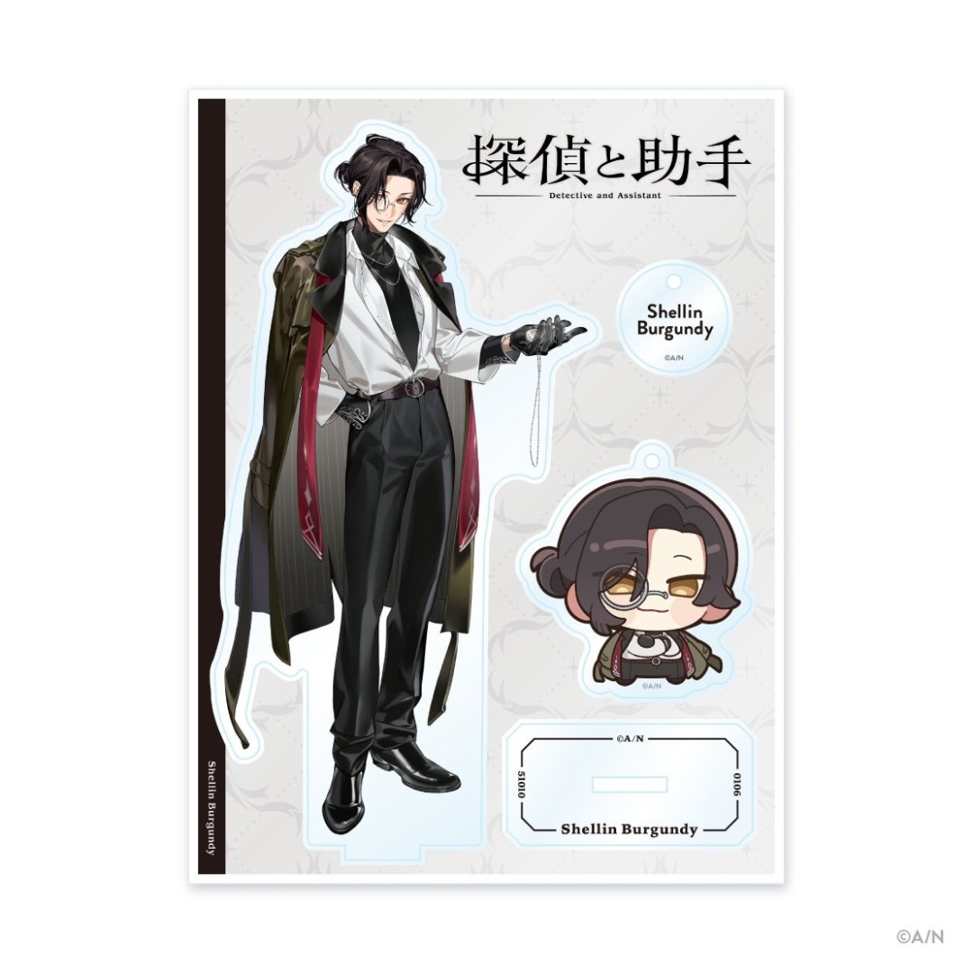 過去曾推出語音廣播劇,以偵探和助手身分經常互動的 VTuber 謝林.伯艮第(シェリン・バーガンディ)與三枝明那,在「ハル」與「鈴木」兩位創作者的筆下以全新視覺圖登場,並以此為基礎推出一系列周邊商品,其中還包括由 VTuber 本人參與設計的品項。