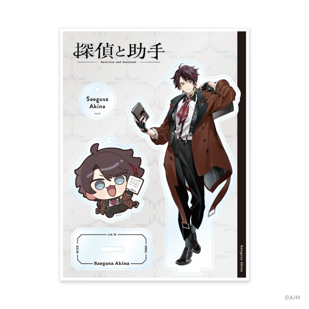 商品陣容包含隨機拍立得風卡片/壓克力立牌/徽章組合/Q 版造型玩偶/偵探事務所套組(內有傳單、名片、原子筆、磁鐵、面紙)/謝林.伯艮第監修的偵探套組(內有領結風吊飾、偵探徽章、留言卡)/三枝明那監修的助手套組(內有筆記本、圓珠筆、留言卡)/指娃用造型服裝(偵探與助手)等等,喜歡謝林.伯艮第與三枝明那的粉絲們不要錯過!