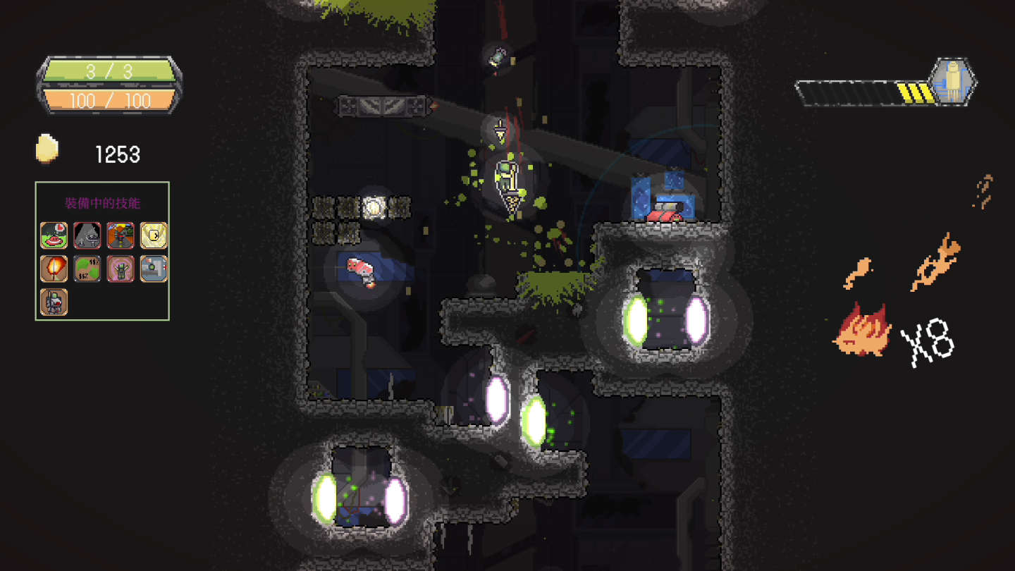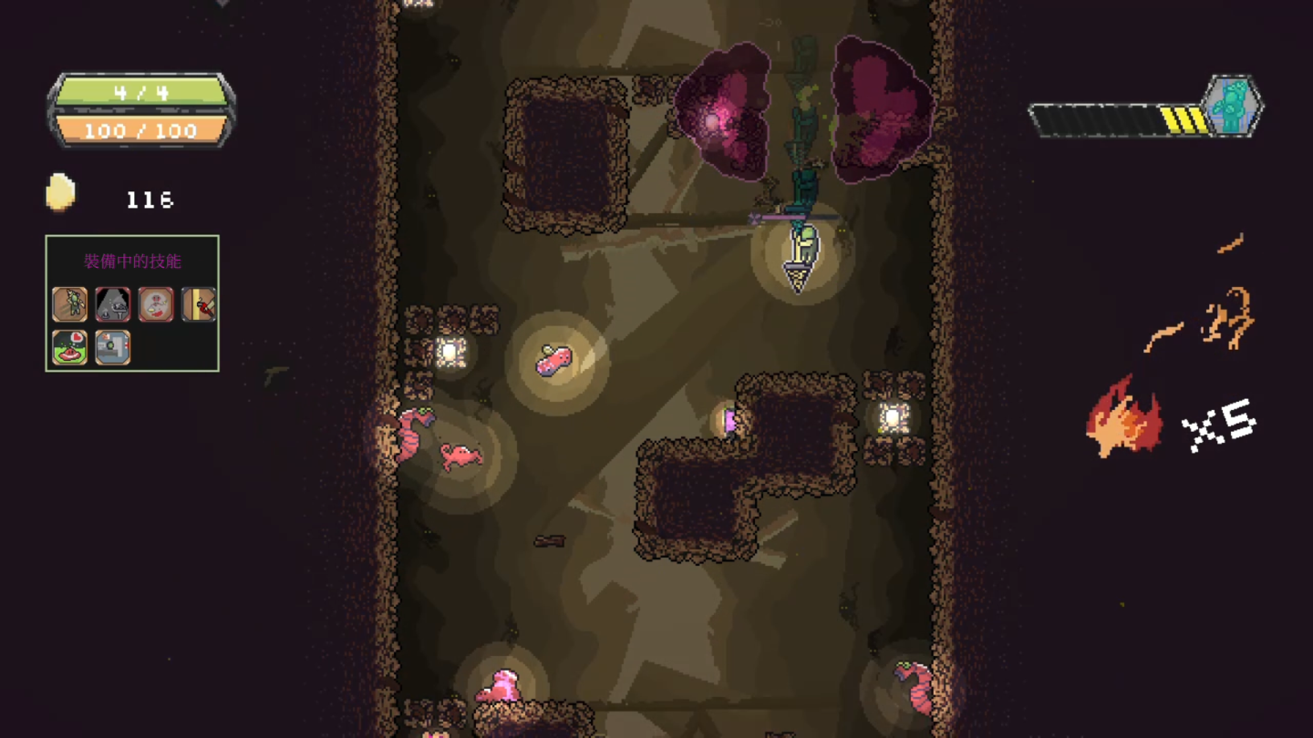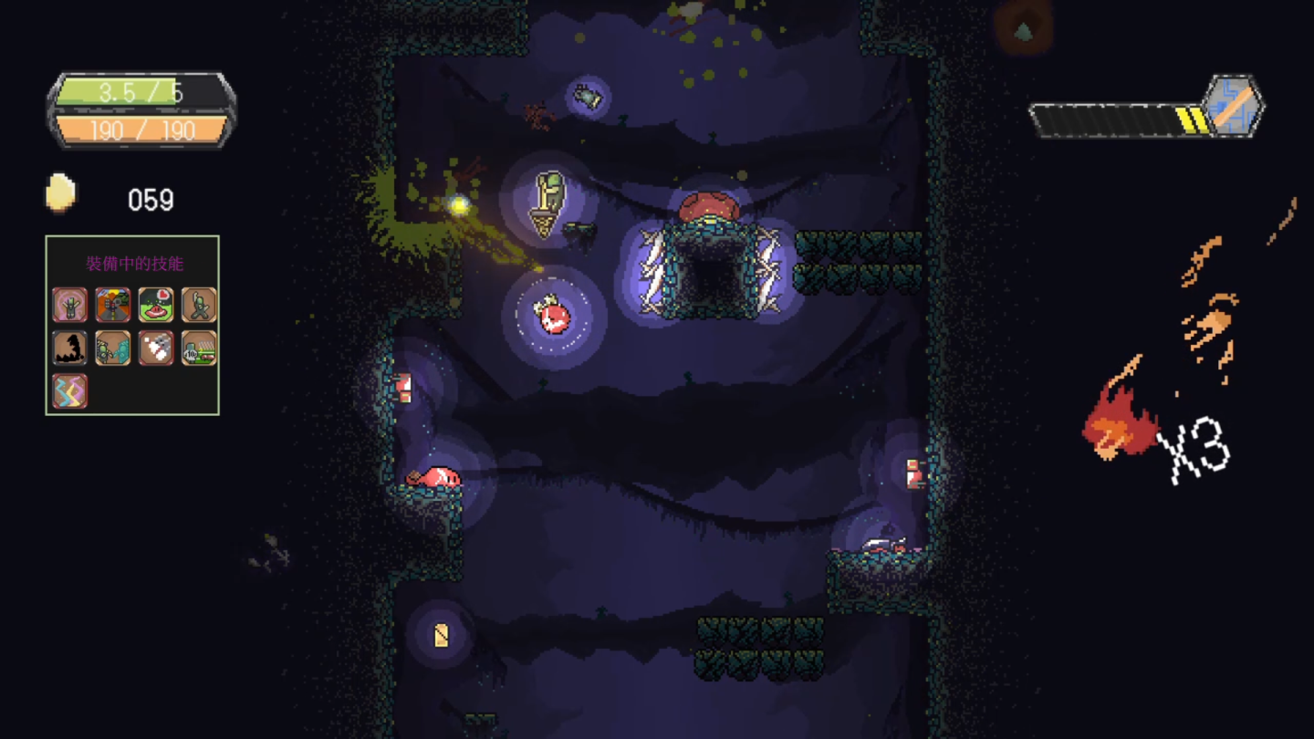 .有別於傳統橫向或縱向捲軸遊戲,全新向下式卷軸遊戲。考驗玩家的反應速度與戰略頭腦,帶來緊張刺激的遊戲體驗。結合 Roguelike 的隨機要素,每一次探險都是全新的體驗!