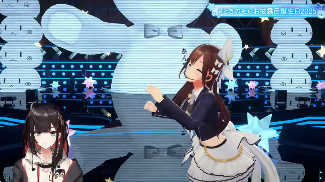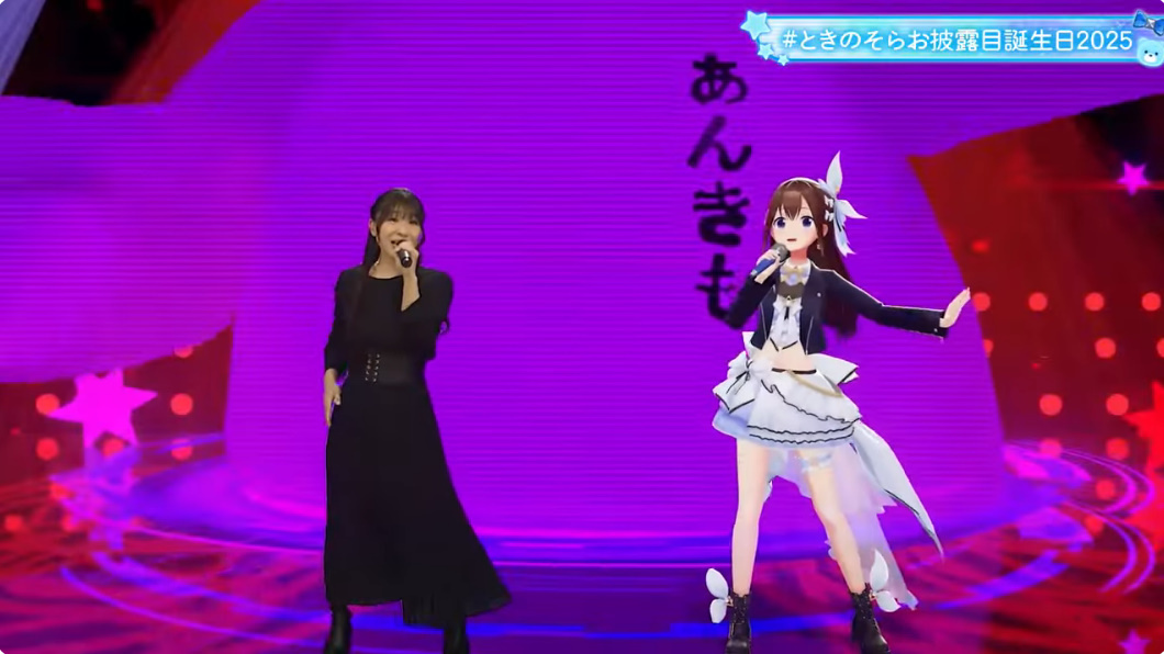 在今晚的生日演唱會上,可以看到巨型鮟鱇肝擺飾,以及疊起來的ぬんぬん團子,空媽還騎在團子上繞場一周,而在來賓環節中,不僅邀請到緋月ゆい/富士葵/轟一/儒烏風亭螺鈿等 VTuber 圈內好友以及 hololive 的後輩以外,還打破次元壁與歌手彩音一起合唱〈コンプレックス・イマージュ〉。