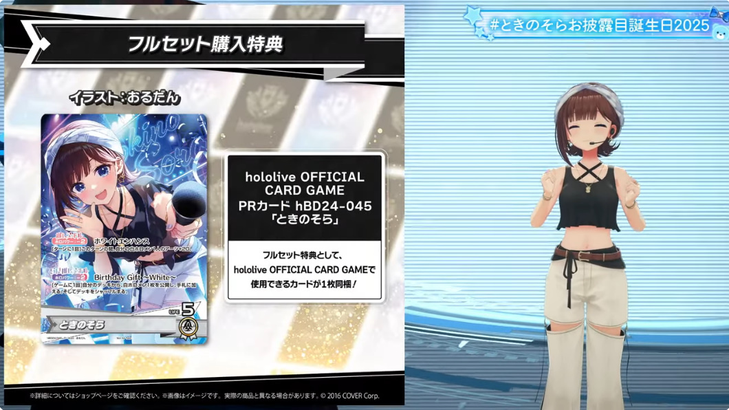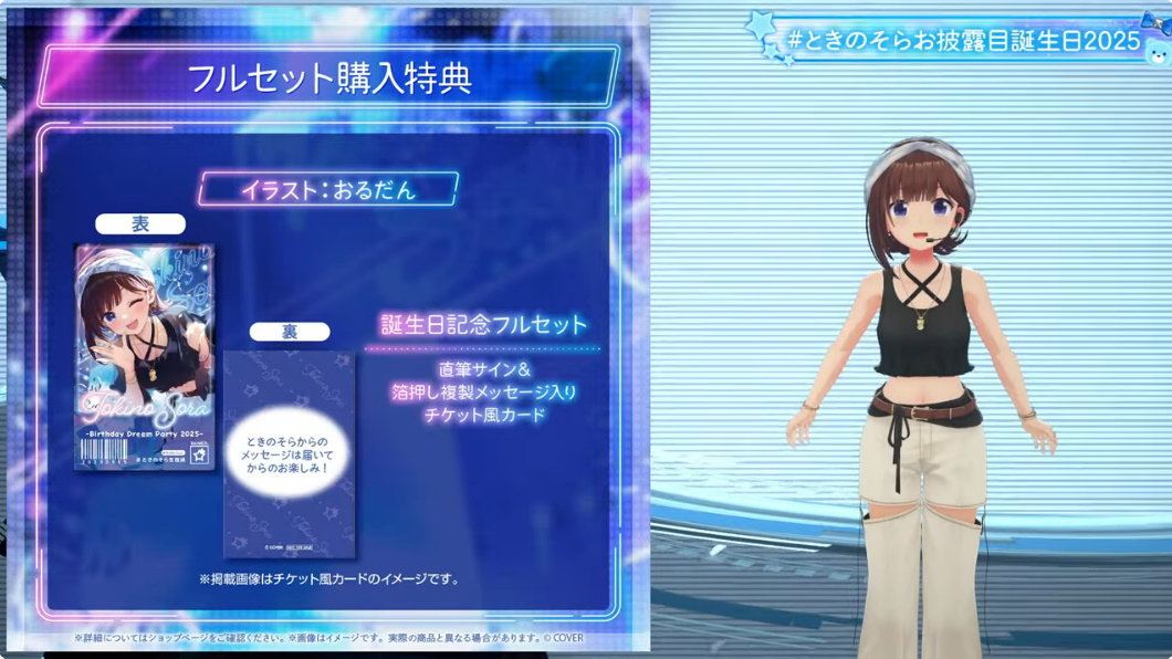 演唱會快接近尾聲時,空媽也公開了今年的生日紀念周邊,商品陣容包含特製海報、造型項鍊(吊飾部分可拆卸)、空媽頭帶風格手帕、造型玩偶(內附環保袋)、「演唱會之後」情境語音,購買全套者可獲得有空媽親簽的紀念票卡和 hololive 官方 TCG 特別宣傳卡片,親簽數量不限,希望粉絲們能踴躍購買喔!