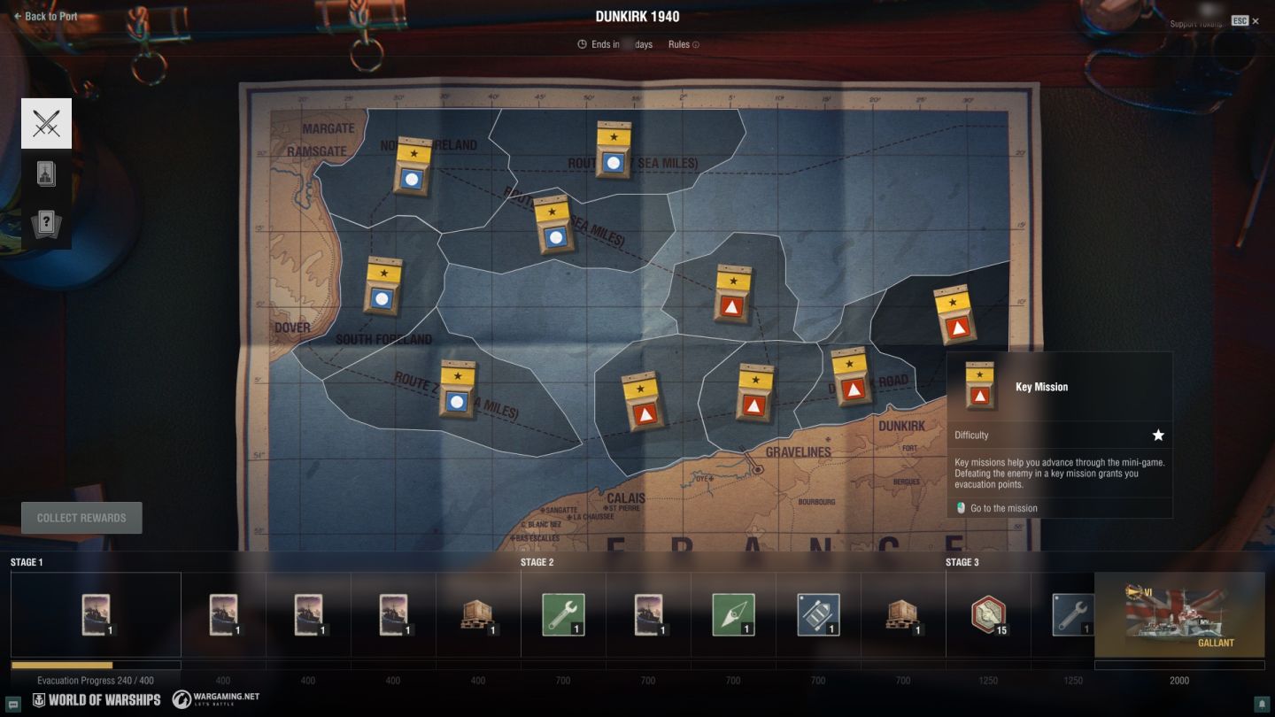 為繼續慶祝發電機行動週年紀念,14.4 版本更新中也將新增一個限時 PvE 港口活動——敦克爾克 1940,玩家將運用代表敦克爾克小船的卡牌來克服各種障礙並獲得「發電機行動」貨櫃、「穿梭戰火」旗幟和 VI 階 Gallant 等獎勵。