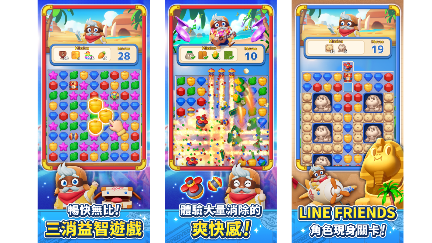 《LINE 天外消消樂》遊戲操作方法超簡單,只需將三個(含)以上的方塊連成線,就能輕鬆消除方塊完成關卡!關卡中偶爾還會出現各種障礙物,但只要抓準消除時機善加運用,反而能成為通過關卡的最佳幫手!大家所熟悉的 LINE Friends 角色們預計也將化身關卡障礙物在遊戲內登場!