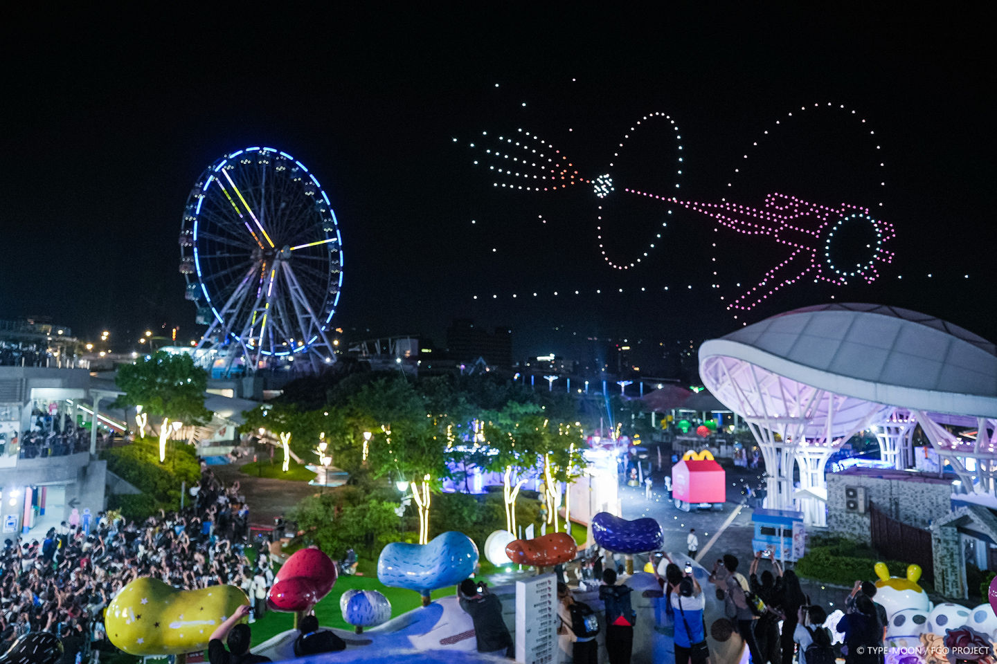 空中演出壓軸登場,無人機及煙火照亮夜空