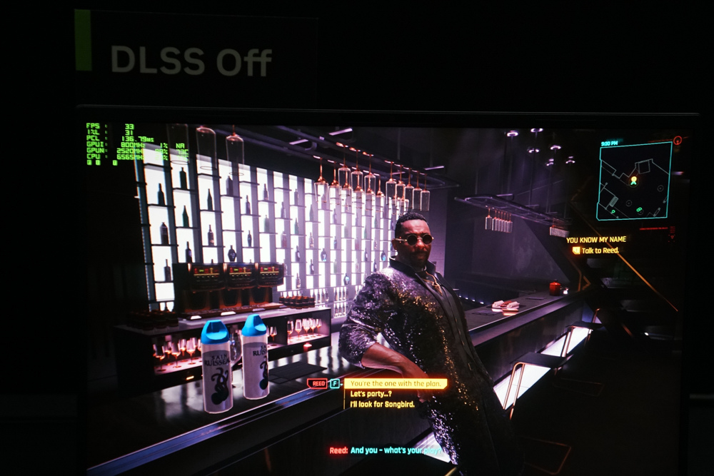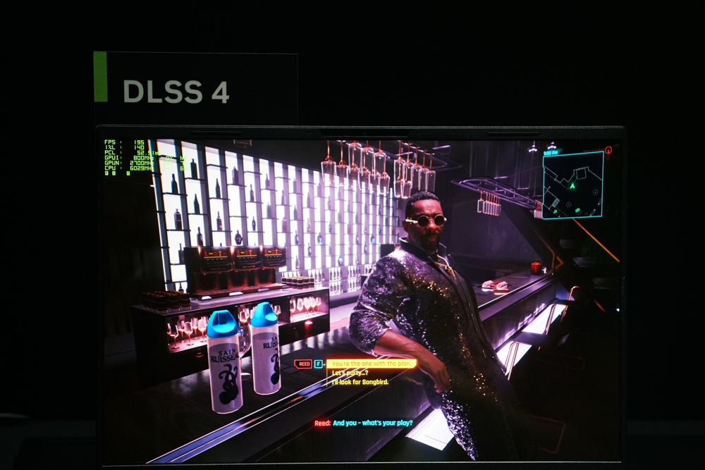 NVIDIA 以《電馭叛客 2077》的展示為例,DLSS 4 結合了光線重建技術,能夠有效消除畫面上咖啡機、水瓶和眼鏡等物體上出現的不穩定和閃爍問題,讓畫面質感更上一層樓。由於引入了全新的 Transformer 模型改進在影像品質的飛躍。新的模型能更好地保留遊戲原有細節,並修正了許多過去鋸齒線條在運動時產生的「爬行」現象。