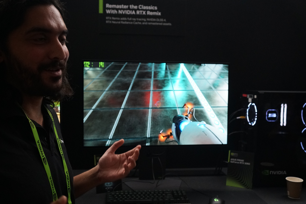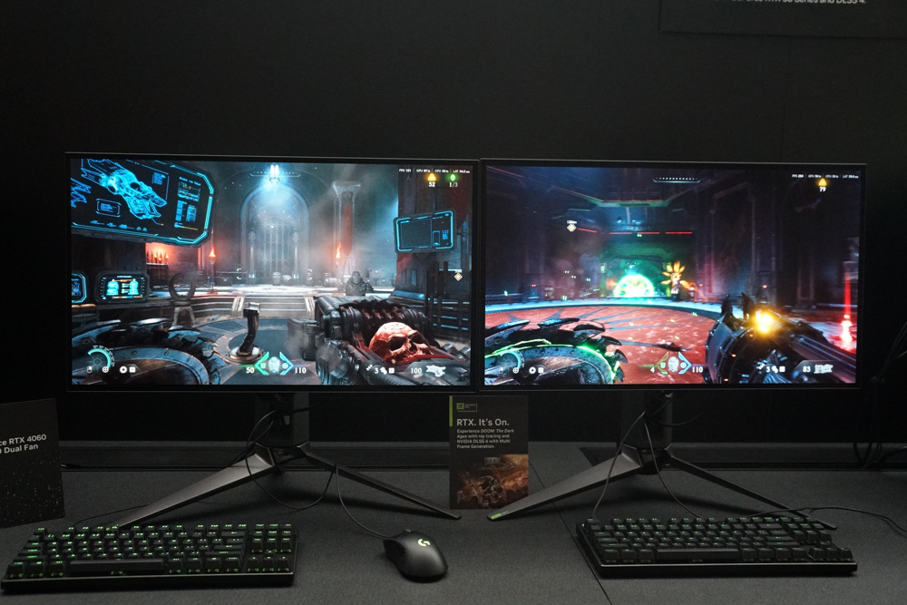 經典遊戲《Portal RTX》引入了 DLSS 4 多畫面生成技術,在 NVIDIA 5060 顯示卡上,以 1080p 解析度、所有設定最大化並開啟路徑追蹤的情況下,更新前使用 DLSS 3.5 約可達到 95 幀率。而更新後開啟 DLSS 4 多畫面生成(4x 模式),幀率可躍升至約 160-170 幀,讓玩家能夠充分利用 144Hz 的螢幕更新率。