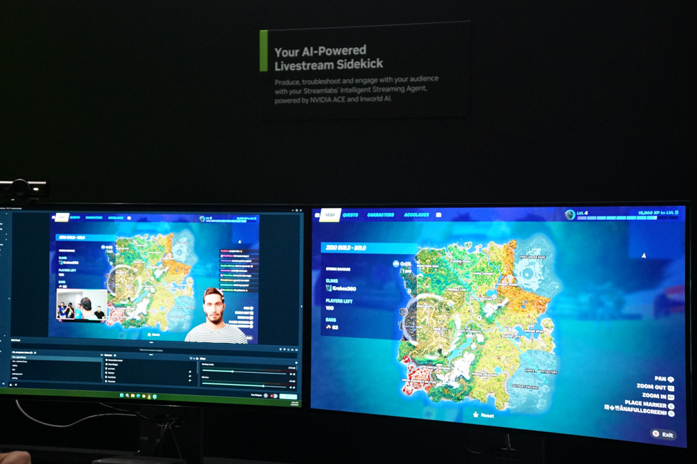Streamlabs 桌面版則是展示整合由 NVIDIA ACE 驅動的 AI 助理,結合了遊戲內 AI 和串流聊天室 AI,主以感知遊戲中發生的事件以及實況的即時狀態。對於入門實況主而言,同時兼顧遊戲、娛樂觀眾、關注聊天訊息、調整音訊和視訊設定等多項任務極具挑戰性,而 AI 助理的目標正是幫助他們提升製作品質,讓實況變得更輕鬆。