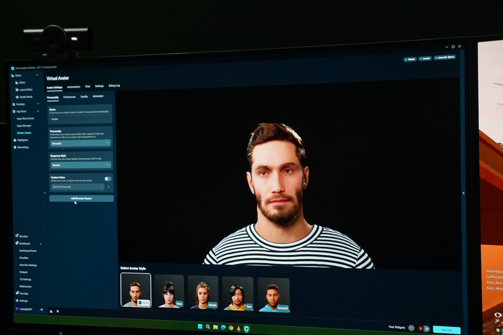 Streamlabs AI 助理是使用了 NVIDIA Ace 音訊介面外掛程式,是基於 Diffusion 模型,能夠創造更逼真臉部動畫和高品質講話時臉部動作的模型。助理的外觀和行為可以高度客製化,用戶可以設定其個性(例如中性、諷刺)、回應風格(例如模仿海盜、維多利亞風格),甚至更換虛擬人偶形象。虛擬人偶最初將提供約 30 種基於 Metahuman 框架的模型,未來希望支援更多不同的藝術風格,甚至能基於用戶個人照片生成虛擬人偶。助理的虛擬人偶可以設定為持續顯示,或只在說話時出現。