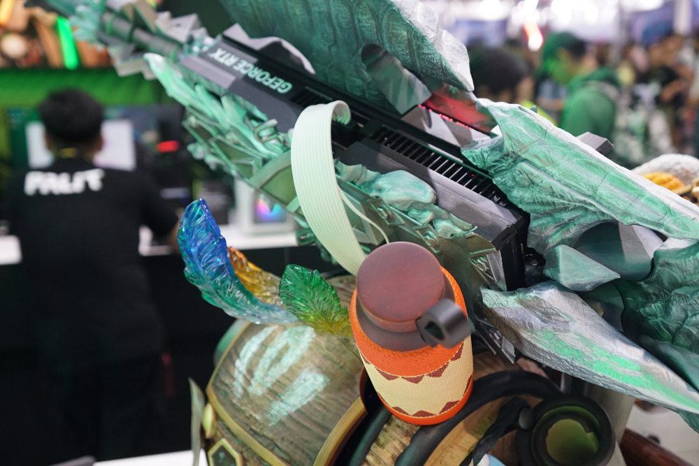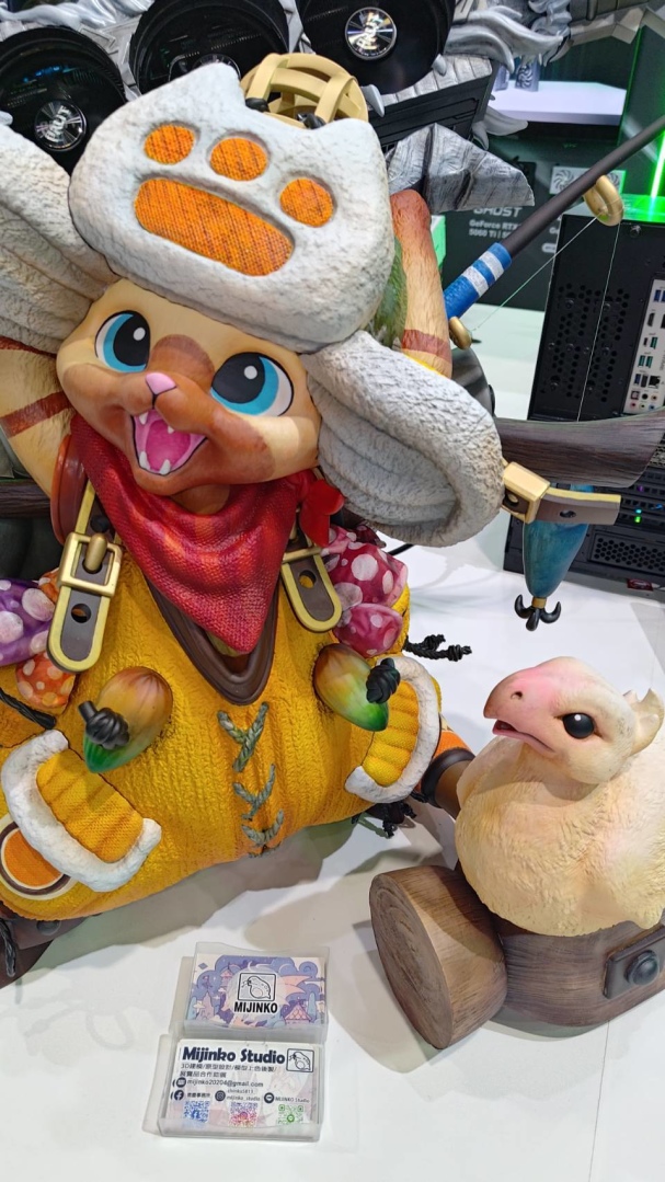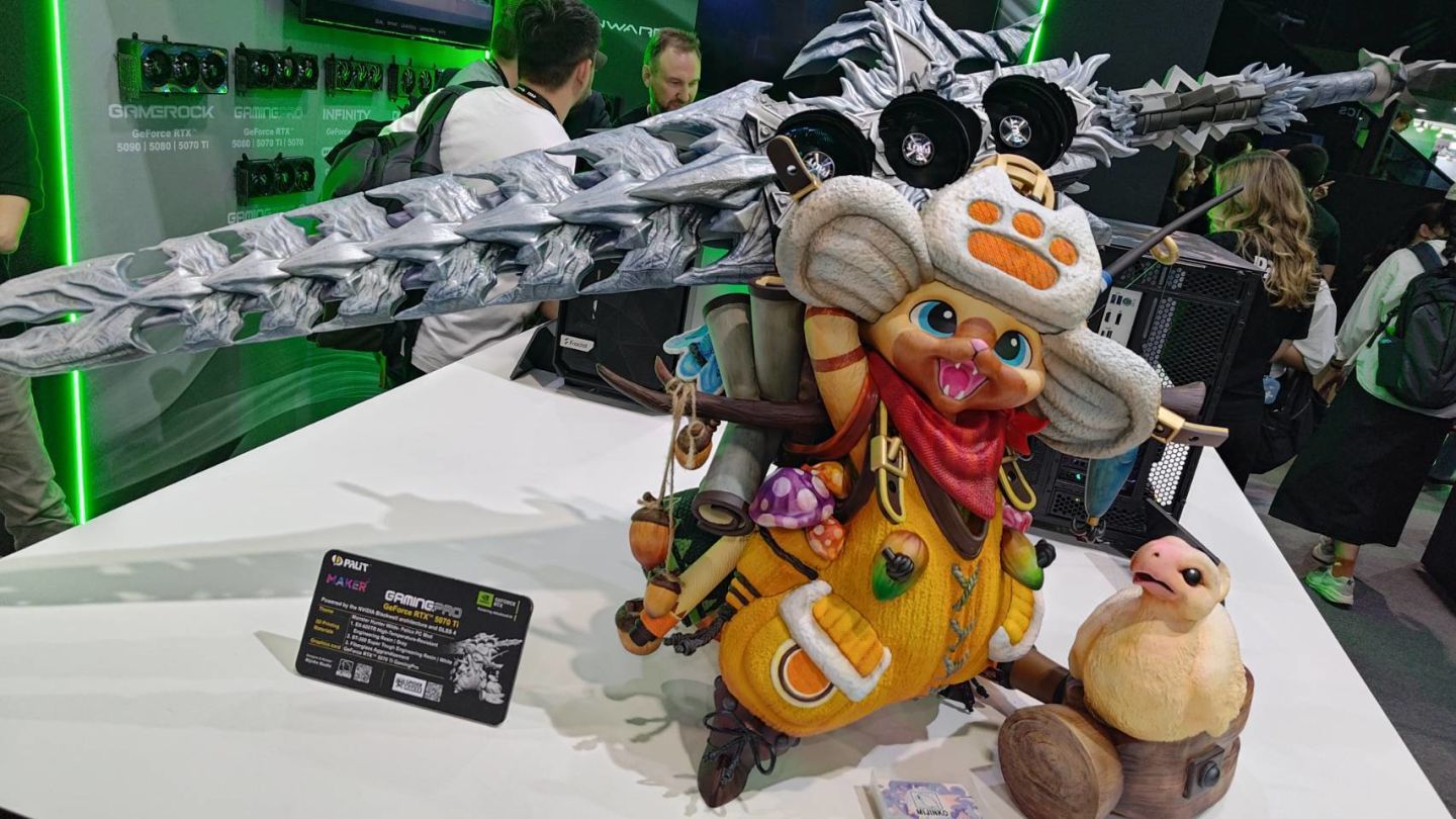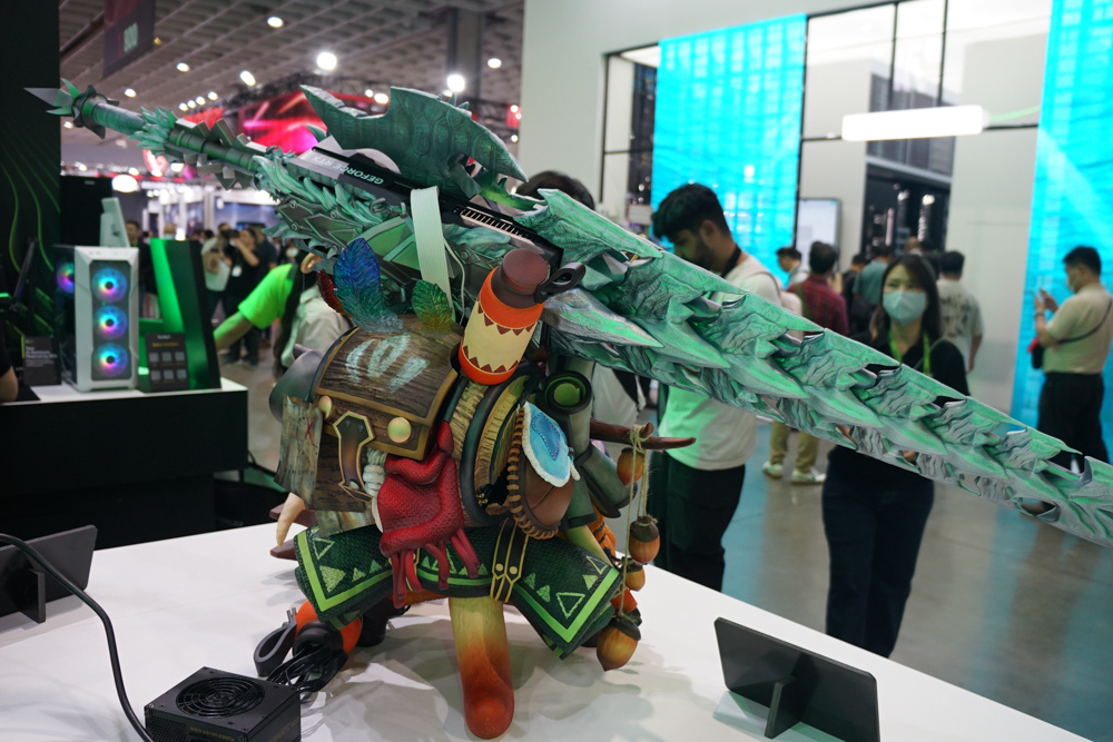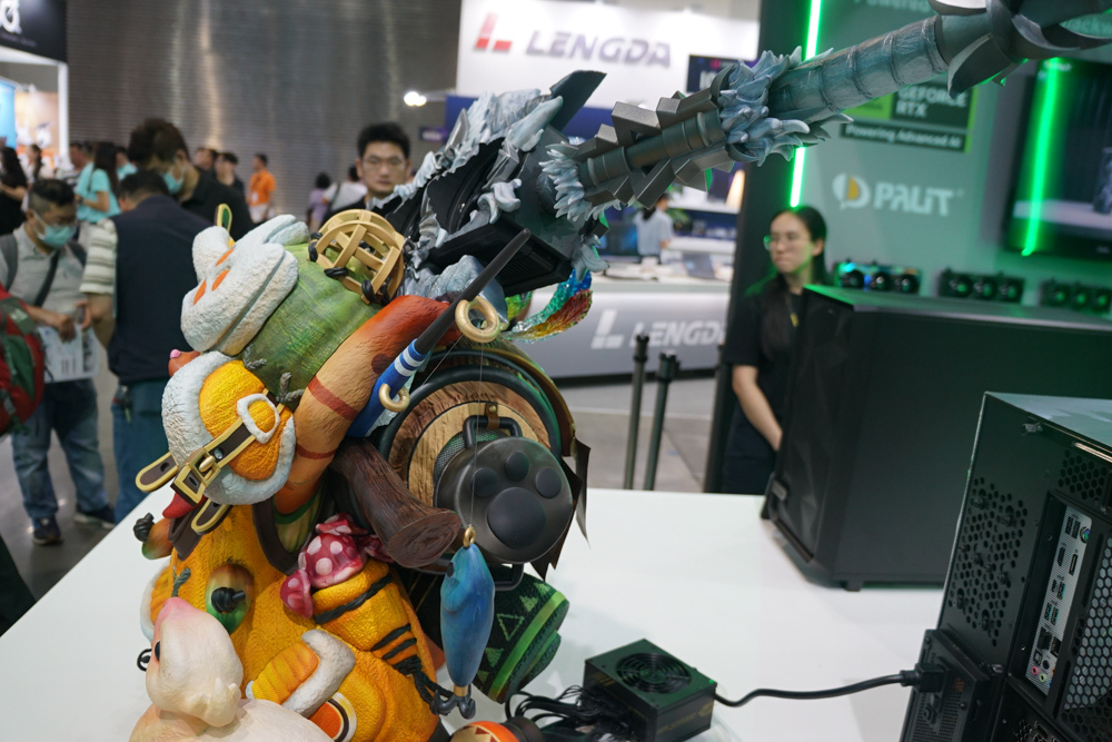台北國際電腦展(Computex Taipei)於今日開幕於南港展覽館,在 1 館 Palit 企業攤位中,由微塵事務所 Mijinko Studio 與 Palit 顯示卡公司合作打造的 1:1 《魔物獵人 荒野》艾路貓造型電腦主機殼首次對外展出。以《魔物獵人》系列人氣隨從角色「艾路貓」為原型的主機殼,高舉 150 公分「鎖刃龍大劍」,其劍柄部分整合了 RTX 5080 顯示卡。