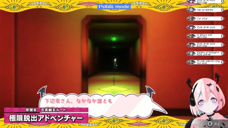 .保健省「丑寅幽玄」路線:本路線為極限脫逃 ADV 冒險玩法。玩家在 3D 迷宮中進行探索,挑戰解不開就會死亡的謎題難關,以及受道德左右的死亡遊戲。