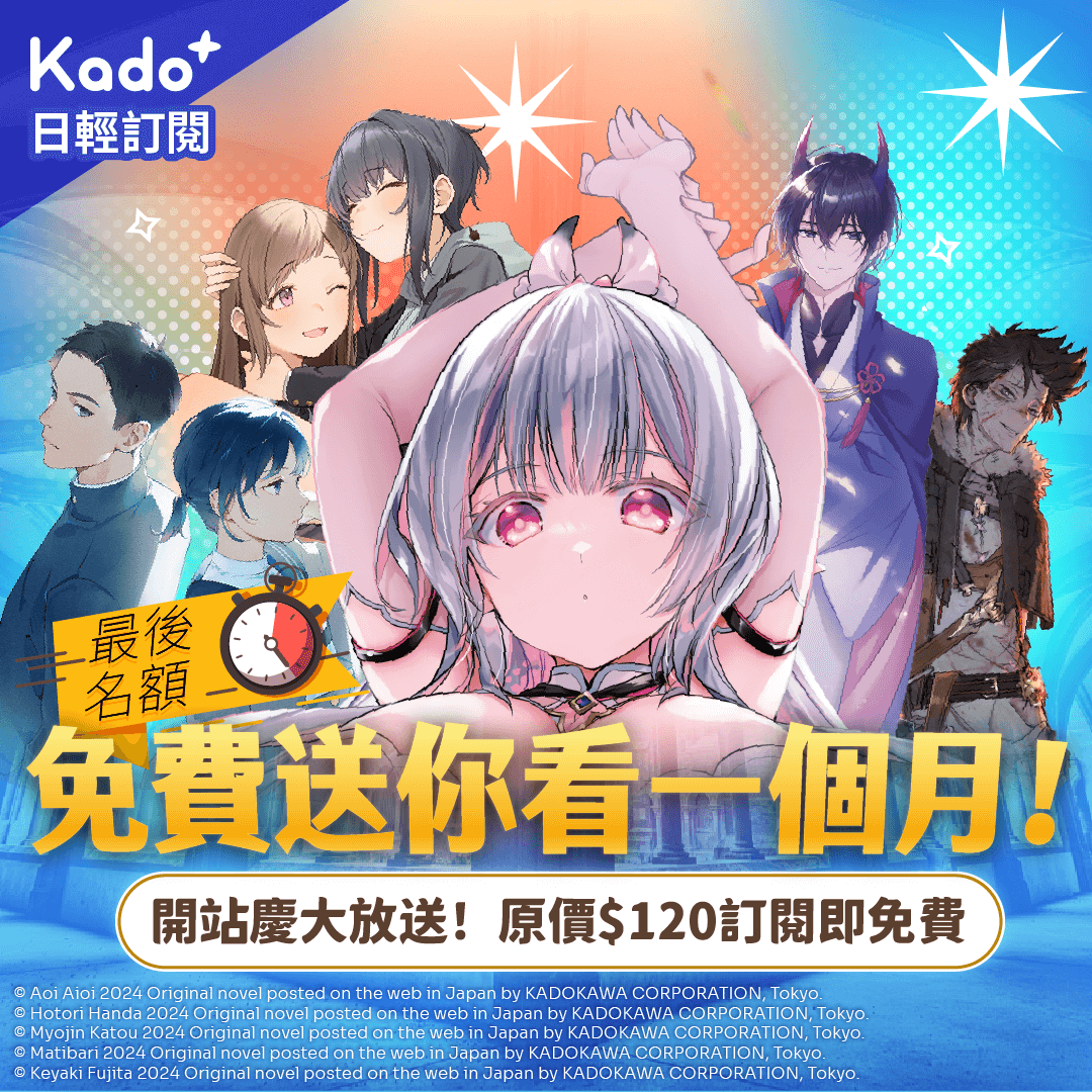 台灣角川旗下小說連載平台 KadoKado 角角者,即日起推出 「Kado+ 小說訂閱制」方案開幕慶特別活動。