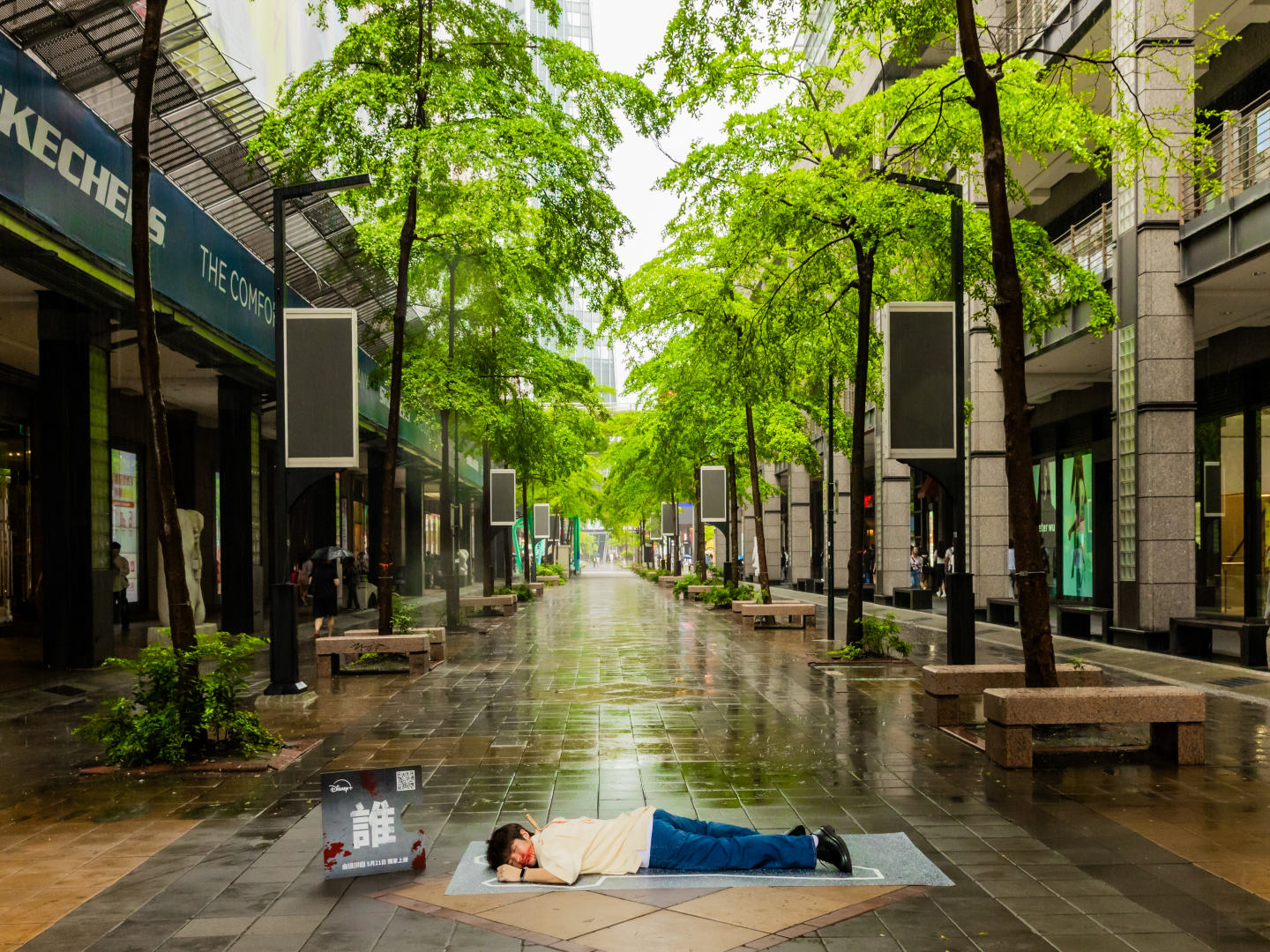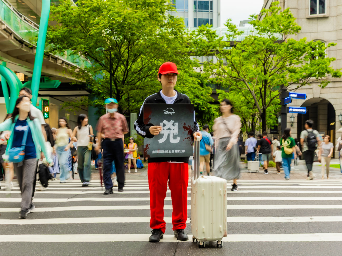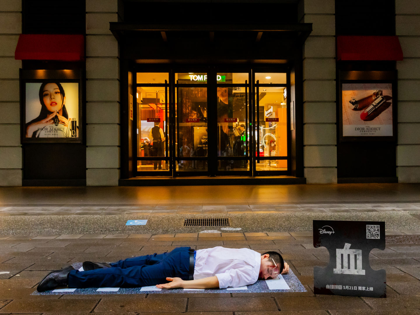 Disney+ 更在上週末於台北信義區舉辦《血謎拼圖》快閃活動為作品造勢,數名神秘人扮裝成兇殺案受害者倒在信義街頭,且身旁皆有一片沾滿血跡的拼圖,造型靈感則來自劇中練續殺人案的各種死狀,有遭勒斃的白衣女子、脖子上插著一把刀的男人、西裝筆挺卻莫名死亡的商人等,讓觀眾可以一睹《血謎拼圖》中的一樁樁神秘案件,也邀請觀眾們跟著金多美帶著這些謎樣拼圖一片片拼湊出案件的真相!