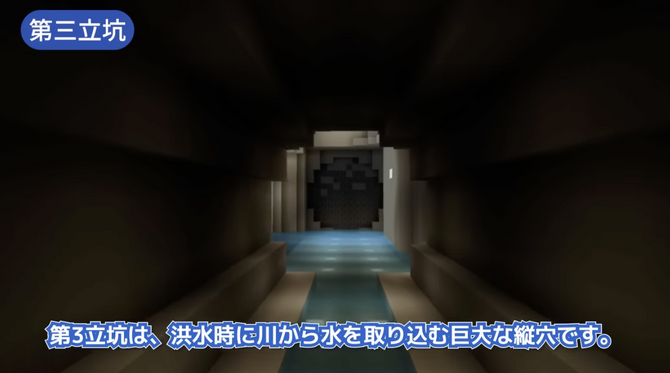 由江戶川河川事務所所管理的治水設施──首都圈外郭排水路,包括立坑、調壓水槽、排水幫浦設備等,已在《Minecraft》中重現,玩家可以在遊戲中探索,並透過互動體驗來學習治水設施的運作原理及基礎建設的重要性。