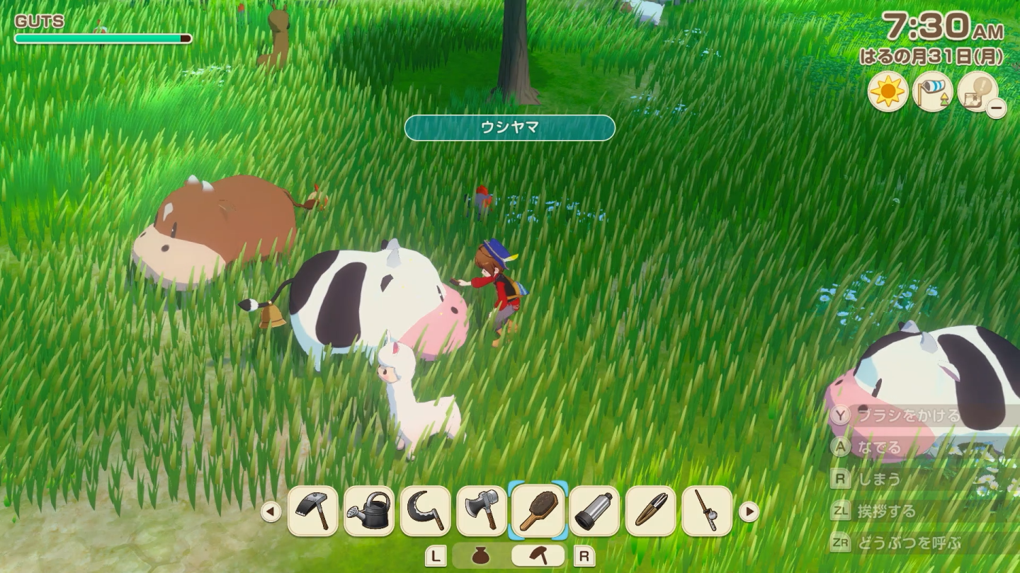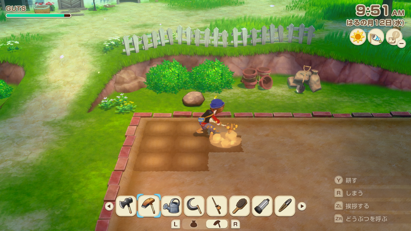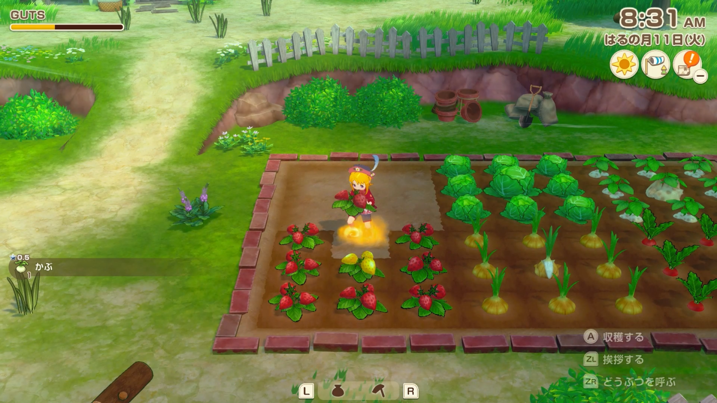 要留意的是,每一項農作活動都會消耗「GUTS」。若是過度勞動導致體力耗盡,玩家可是會累癱喔。如何安排每日作業與體力管理,也成為玩家經營農場的一大關鍵。