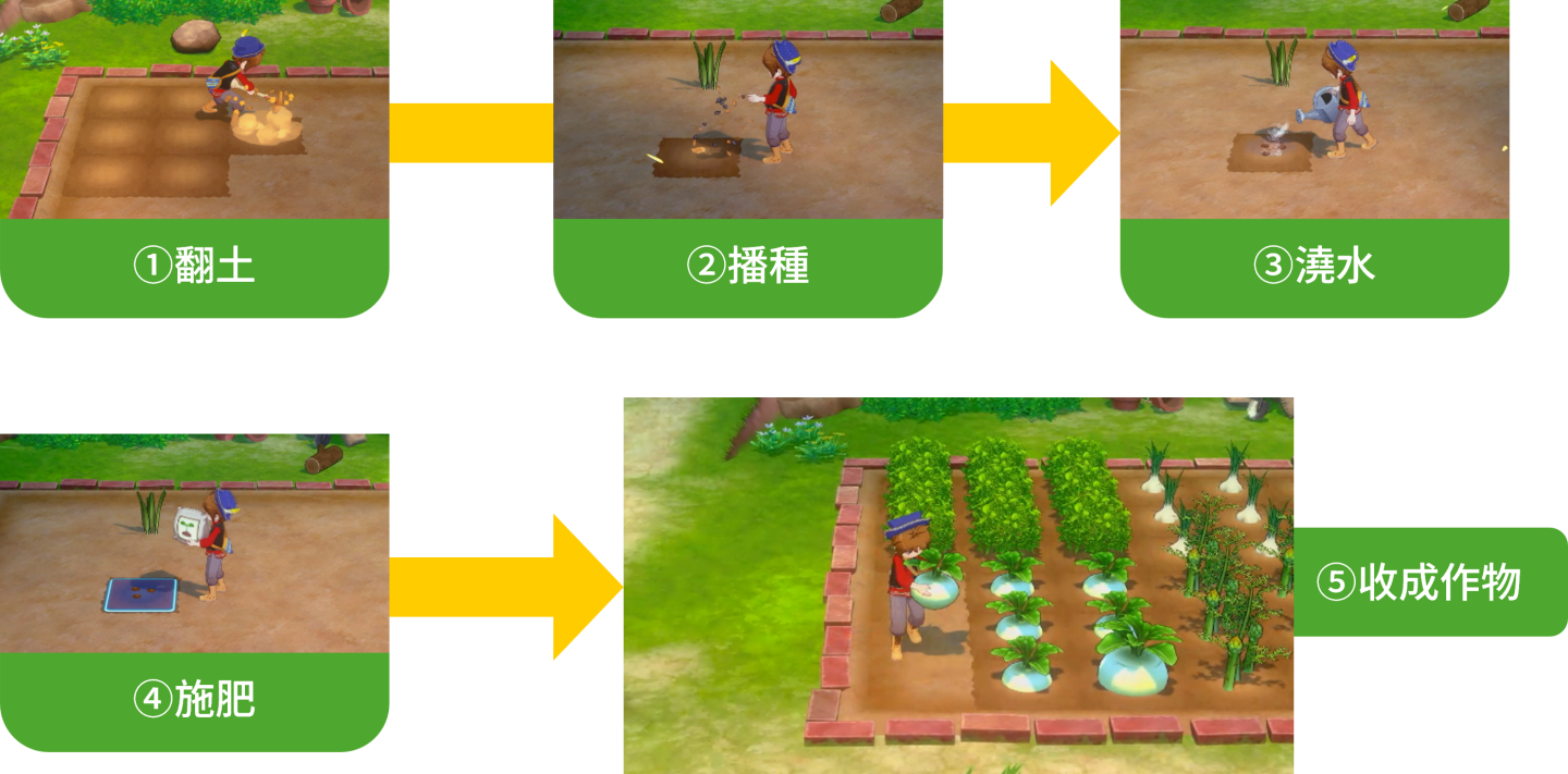 在田地裡,玩家可以栽種多種作物,包括蔬菜、水果與花卉等。從翻土、播種、施肥到每日的澆水,每個步驟體驗到栽培作物的樂趣。透過跳躍等便利動作,能更有效率地完成農作流程,充分活用遊戲機能,培育出高品質的作物吧。