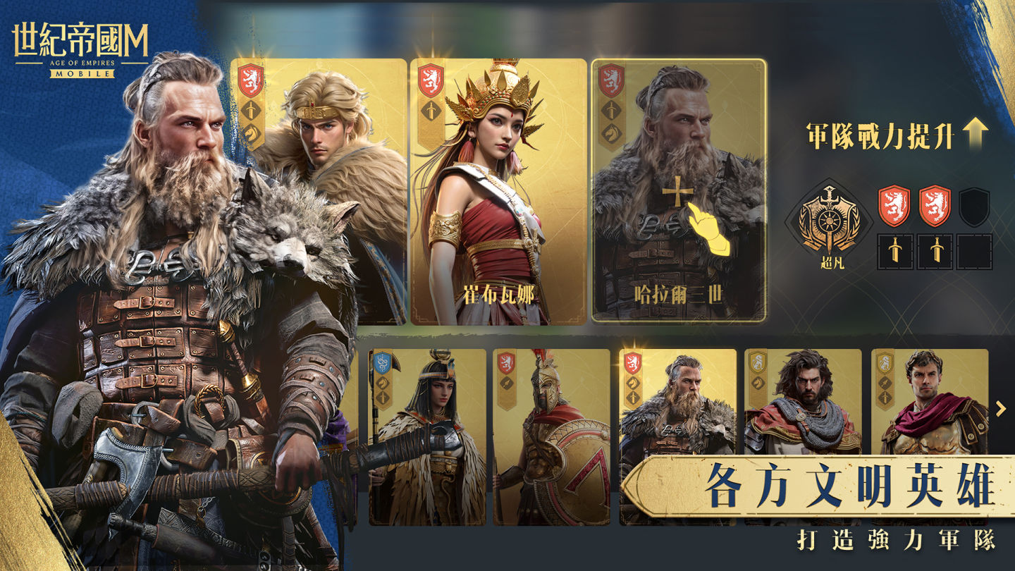 40 多位來自不同文明的傳奇英雄任你選擇,聖女貞德、列奧尼達一世和凱撒大帝等傳奇人物將與宮本武藏、花木蘭、杜加瓦蒂等各具魅力的新朋友聯手作戰。