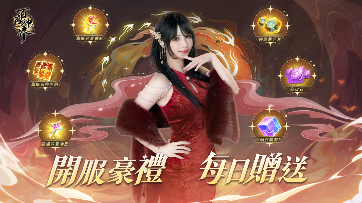 除此之外,玩家只要連續登入 8 天,即可領取開服大禮包!包括鑽石×200、地區限定神將「媽祖」、「高級召喚契約」×10、「神農鼎碎片」×60、「高級尋寶鑰匙」×1、「心願召喚契約」×1、鑽石×1,000、「觀世音菩薩」等虛寶獎勵!同時,遊戲內還設有英雄集結、限時幽冥、大荒紀行等眾多精彩活動,趕快進入遊戲體驗吧!