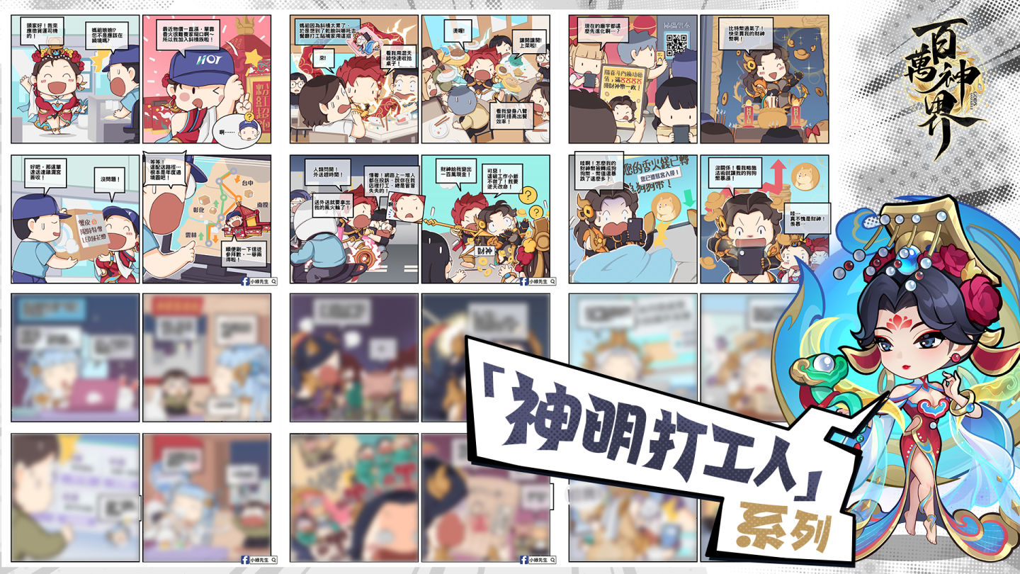 此外,本土人氣繪師「小綠先生」也加入了《百萬神界》,以獨特的畫風融合現代職場話題,打造《神明打工人》系列漫畫。目前,媽祖篇、哪吒篇、財神篇均已上架,還想知道城隍爺、月娘和觀世音菩薩的職場生活過得如何嗎?趕快行動起來,下載《百萬神明》,加入這場跨越神話與現實的奇幻之旅吧!