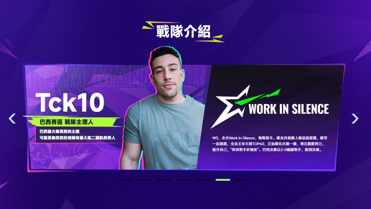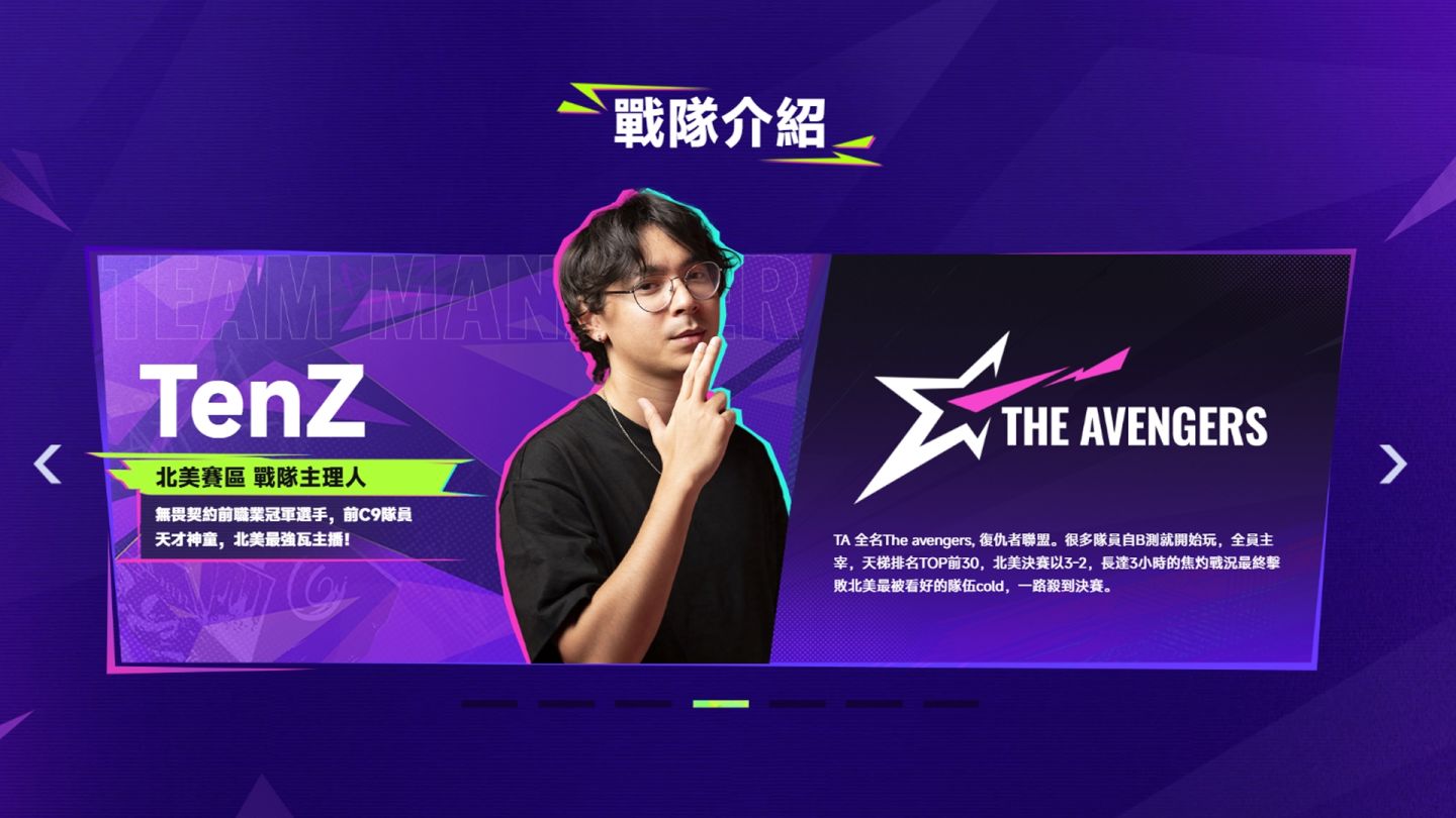 本次賽事不僅集結各區頂尖戰隊,更邀請殿堂級戰隊主理人共同參與!北美賽區由戰隊主理人 Tenz、俄羅斯賽區由 Recrent 等 FPS 前職業選手坐鎮指揮。港澳台賽區則由人氣實況主哈耿領軍出征,率領王牌代表隊 Solo Leveling 踏上國際戰場!