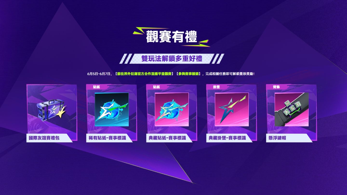 除了社群應援活動外,官方將於 6 月 5 日至 6 月 7 日賽事期間,透過 Twitch 官方頻道進行全程賽事轉播。觀賽玩家不僅能即時觀看賽事精彩對戰,更有機會獲得豐富的虛擬寶物獎勵,包含遊戲內限定禮包、賽事限定貼紙、專屬掛墜等多樣獎品。