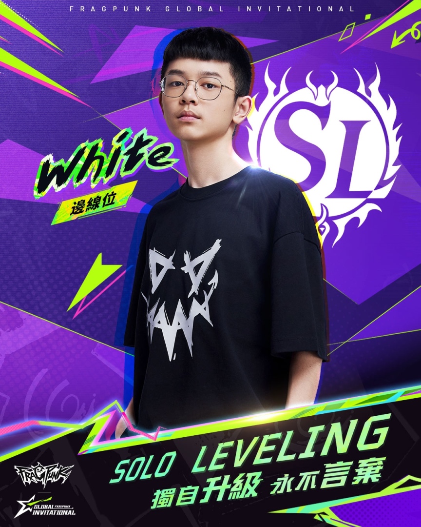 Solo Leveling 作為首屆《FragPunk》國際邀請賽港澳台賽區的王牌代表隊,戰隊成員包括 NiuNiu、Tuboshu、White、FLASH 與 Howl 五位精英選手。自遊戲公測以來,他們在排位競技中穩居排行榜前十,展現堅強的團隊實力。更在「破界盃」電競賽事中奪得公開組冠軍,實力備受肯定。這支充滿無限潛力與競技經驗的王牌隊伍,將在國際舞台上全力釋放港澳台賽區的競技魂魄,為榮耀征戰到底!