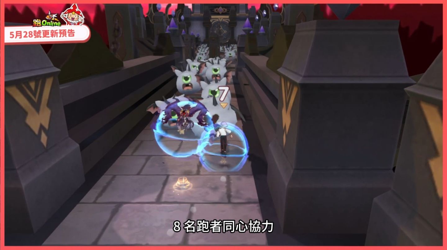 原軍團長「夏魯」遭受侵蝕,徹底失控!全新地圖「深淵的惡魔神殿」邀請最多 8 位跑者共同迎戰。每個區段都設有限時限制,需解開機關謎題才能延長戰鬥時間;進入 Boss 區後視野僅剩四分之一,且全程禁止使用道具戰,跑者之間必須精準配合、分工合作,才能一舉擊敗暴走的夏魯!
