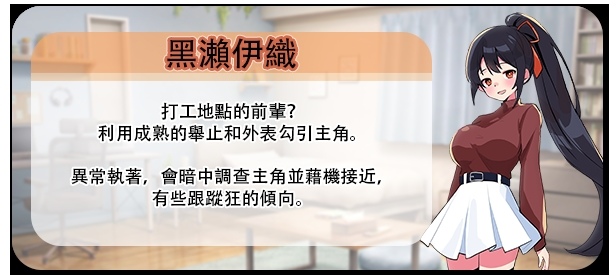 個性鮮明的角色們,為故事增添深度與戲劇性。包含溫柔支持失憶主角的女主角「秋空楓」,以跟蹤狂姿態接近主角的「黑瀨伊織」、昔日戀人「北谷渚」,以及默默守護主角、懷抱思念的少女「星乃燈」——四位女主角圍繞著主角展開戀愛攻勢,讓人心跳加速、無法自拔!