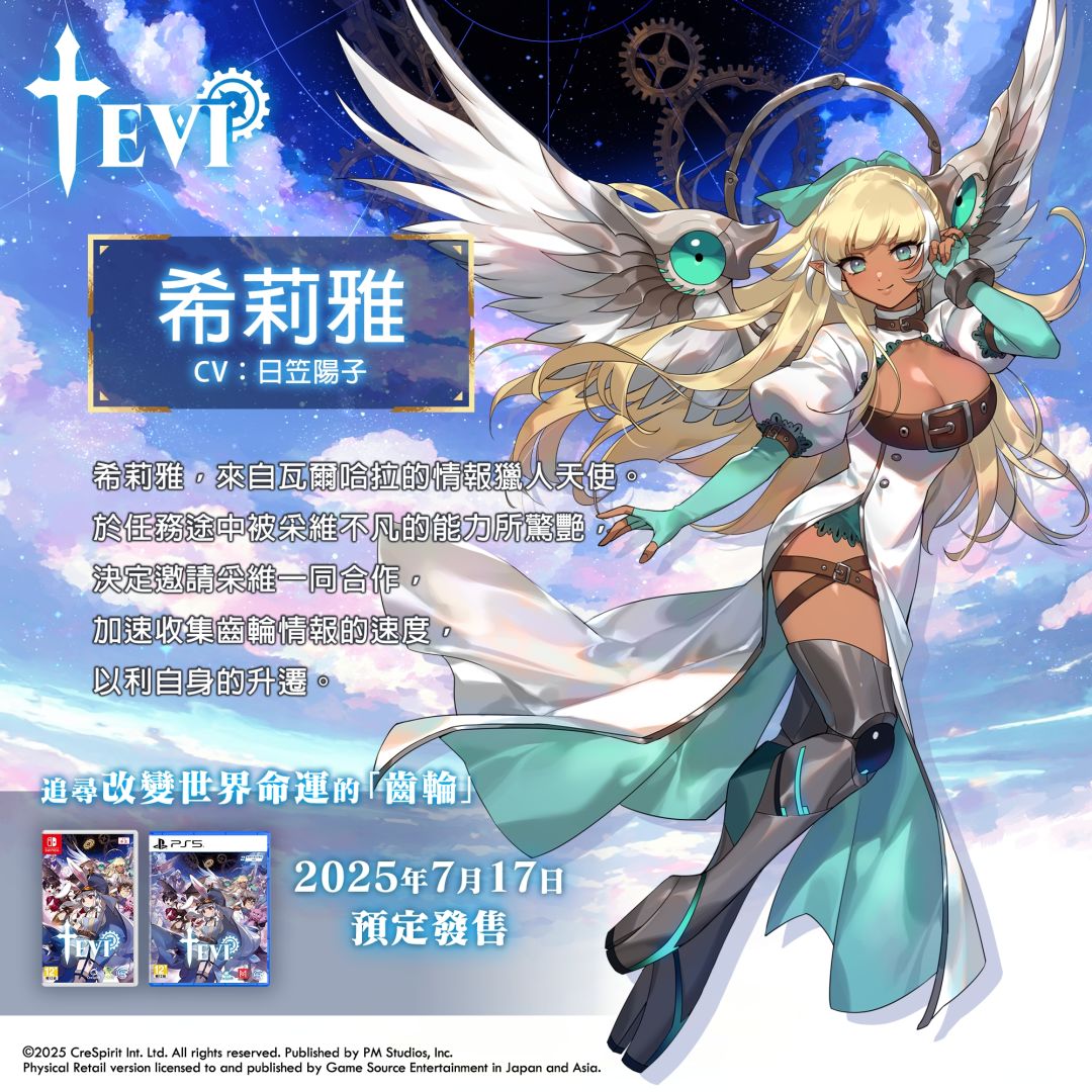 Game Source Entertainment(GSE)宣佈,台灣獨立遊戲隊 CreSpirit 所致力開發的 2D 惡魔城探險動作遊戲《TEVI》,預定於 2025 年 7 月 17 日推出 Nintendo Switch 及 PS5 亞洲實體版,並且將會由 GSE 負責發行。