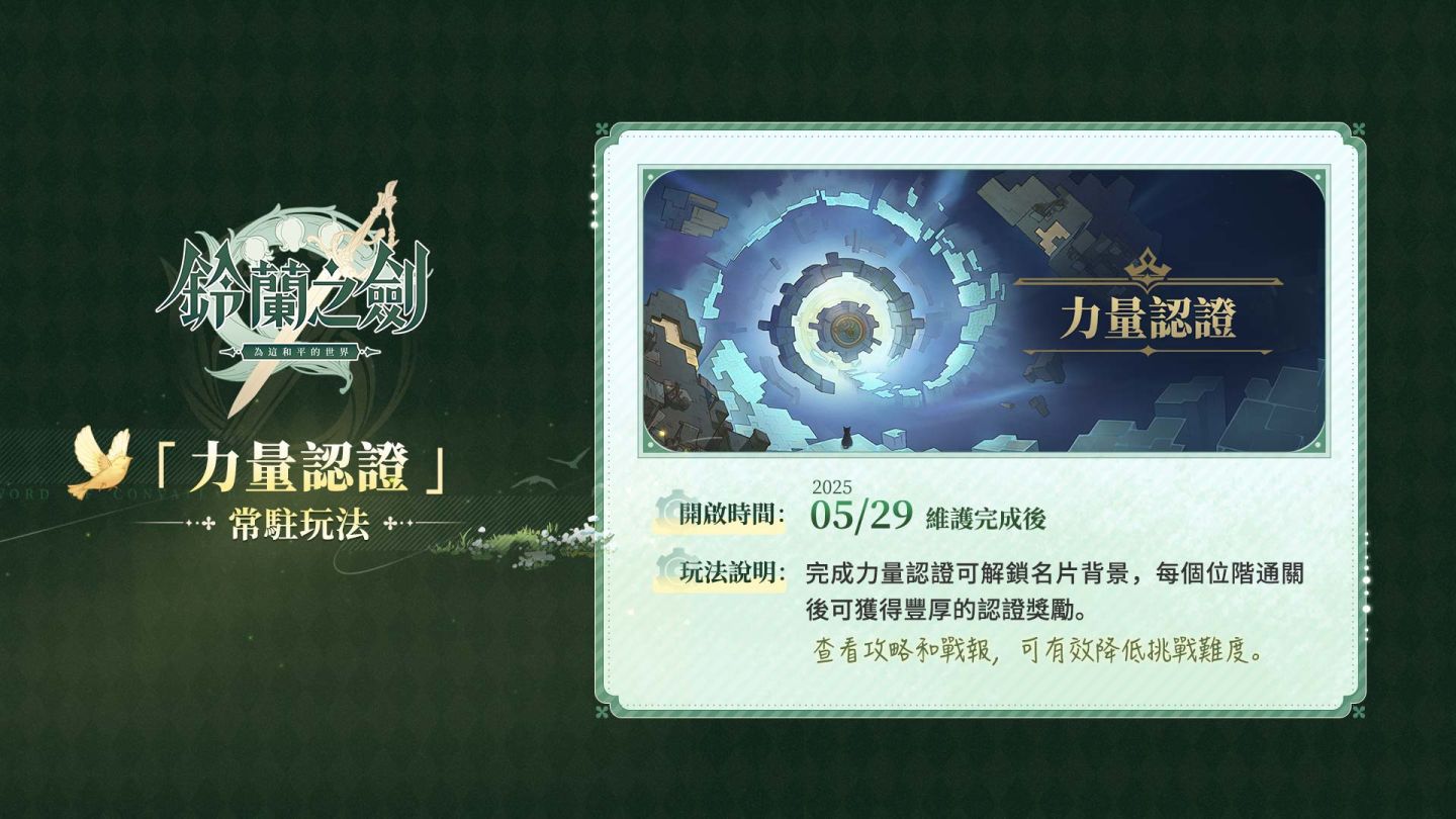 全新常駐玩法「力量認證」正式登場!