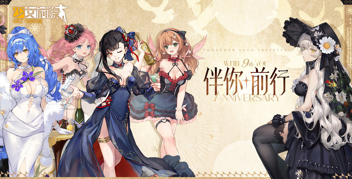 鮮花、美食、座椅,一切都準備就緒。此次推出「伴你前行」主題裝扮,共包含「HK433-莫內的白晝」、「89 式自-特調時分」、「Bren Ten-甜夢圓舞曲」、「TAR-21-蘭鳶花鈴」、「QBZ-191-玄衣卷月」、「95 式-流光韶羽」、「SIG MCX-紅粉鐵拳」等七位人形的裝扮。只要你一落座,晚宴就可以開始了,慶賀吧!這個象徵長久的 9 週年即將到來!