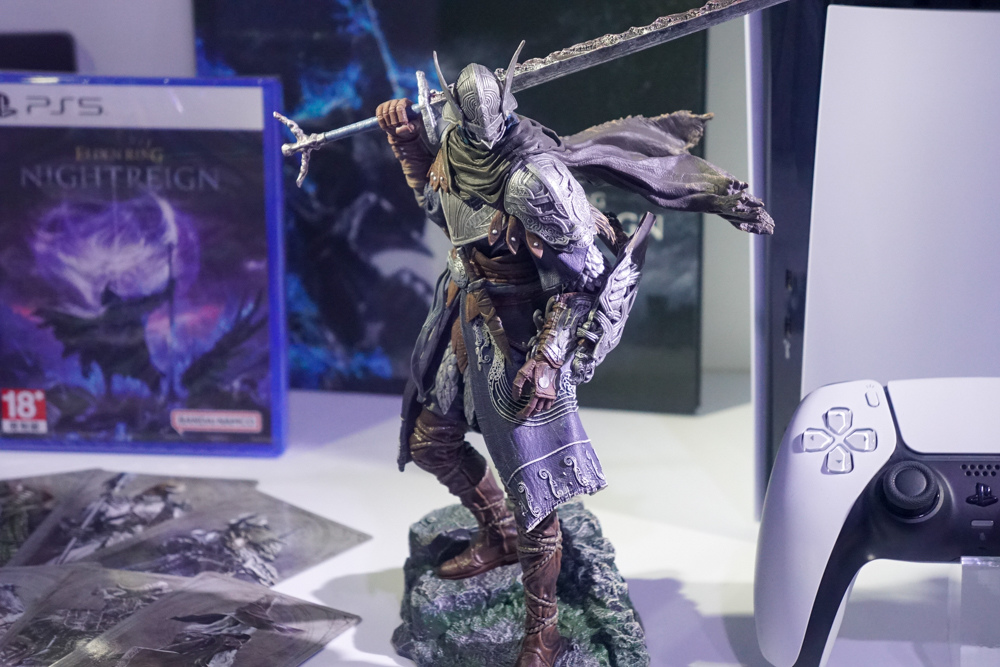 現場也精心佈置了以《艾爾登法環 黑夜君臨》和《超級機器人大戰Y》為主題的特色攝影區,內容有典藏版模型以及相關特典展示,供玩家在享受遊戲之餘拍照留念。