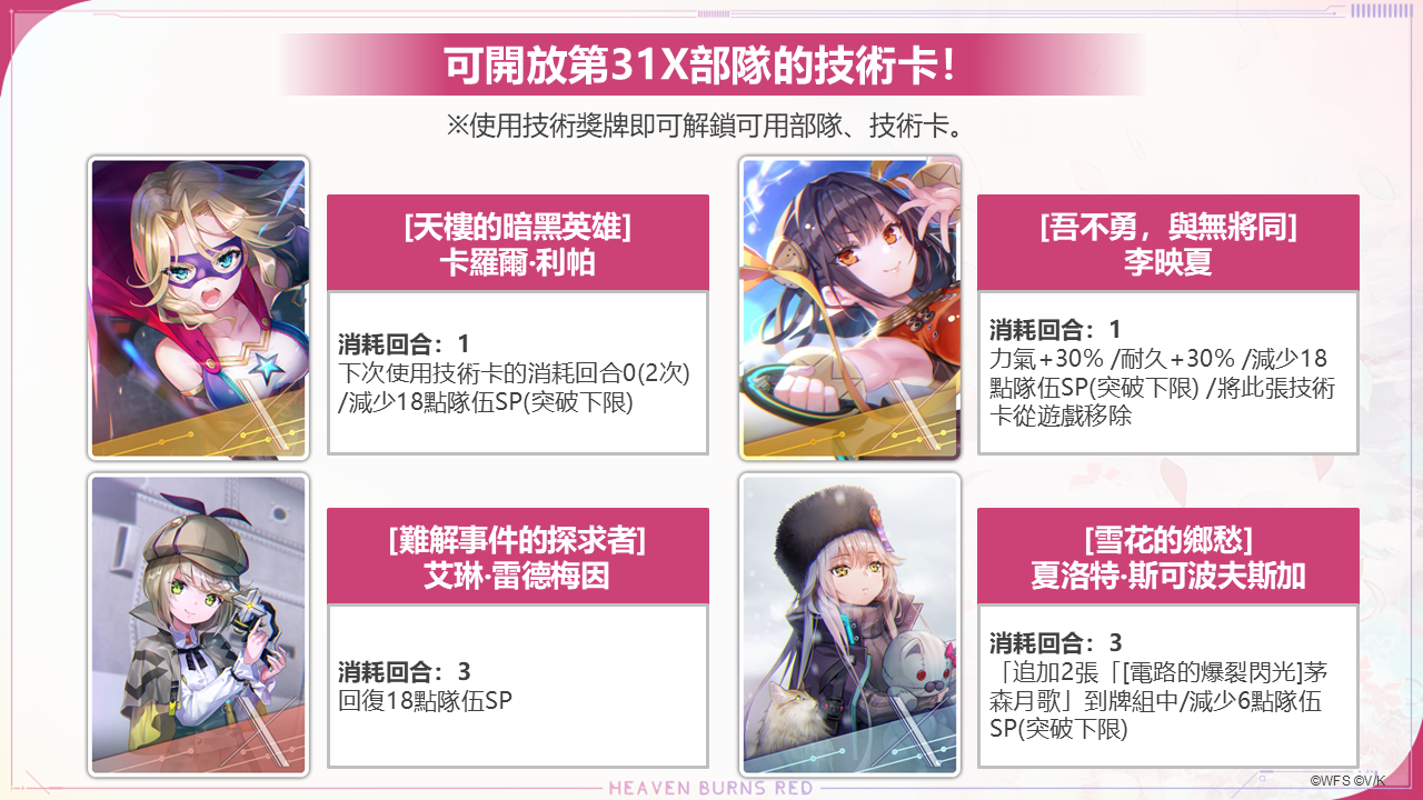 .新追加 18 張第 31X 部隊角色的技術卡。