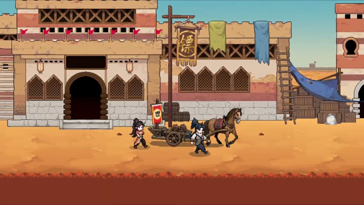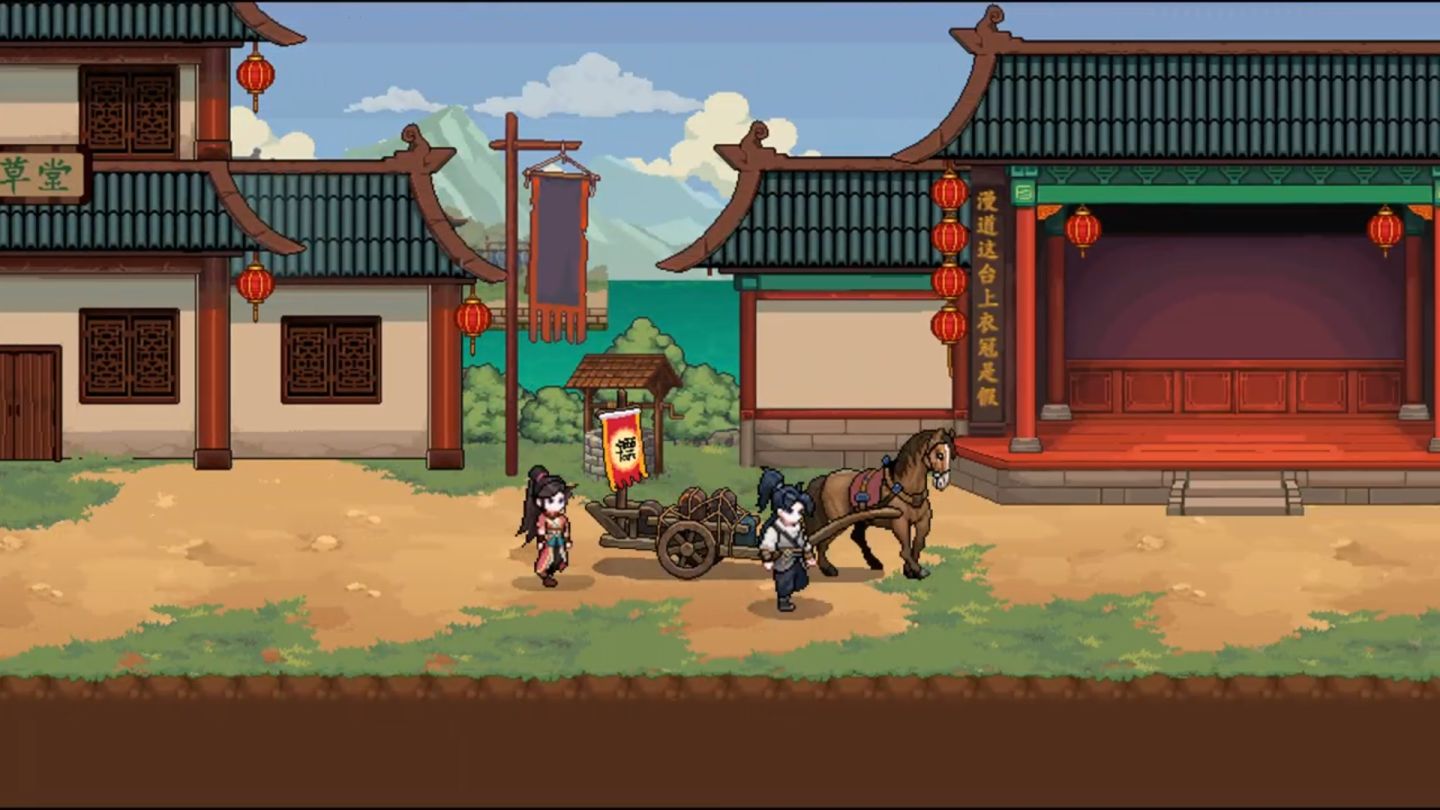 同時選用了多種民族樂器,為這些場景製作了對應的背景音樂,配合上細節豐富的像素畫面,營造出沉浸式的武俠世界。讓你在跑商途中經歷緊張的戰鬥環節之餘,領略當地的風土人情。