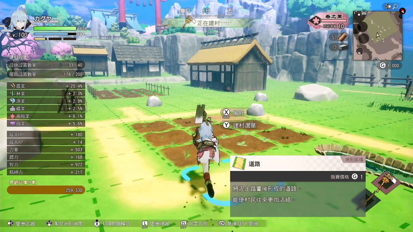 村莊開拓系統是本作核心玩法。玩家可以在特定區域建造房屋、移除石塊、創造土地,並擺設各種物件來自訂村莊外觀。村莊的發展與村民的幸福度息息相關。前川總監指出,每個村莊都有其「幸福程度」,這取決於是否有足夠的住房和食物供應等。如果無法滿足村民的需求,他們可能會離開;反之,如果幸福度達到需求,村民就會搬進來。玩家可以透過擺設裝飾物打造獨特風格的村莊,並利用遊戲後期的素材進一步豐富創造的可能性。