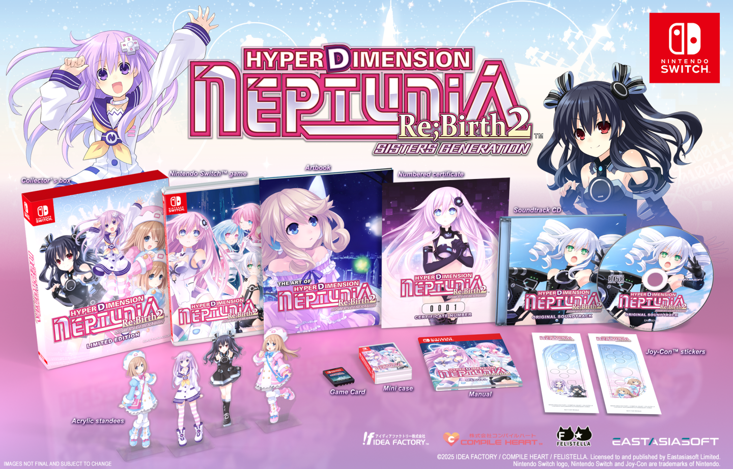 Eastasiasoft Limited 今日宣布,再次與 Idea Factory 合作,在亞洲發行《超次次元遊戲 戰機少女重生2 妹妹世代》Nintendo Switch 版本。本次發行將包含繁體中文與英文文本,以及日語和英語配音。