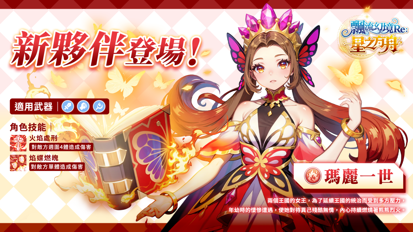除了人氣滿檔的電玩小魔女外,官方同時推出《飄流幻境》系列中首次登場的全新火屬性夥伴「瑪麗一世」。