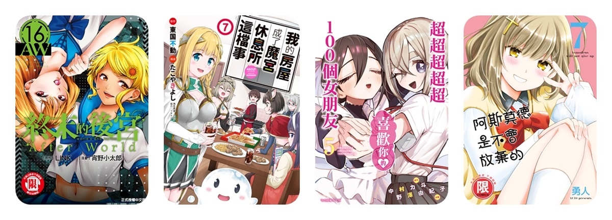參展作品包括爆笑喜劇《超超超超超喜歡你的100個女朋友》、異世界冒險《我的房屋成了魔宮休息所這檔事》、精彩科幻懸疑《終末的後宮》,與奇幻惡魔共處的《阿斯莫德是不會放棄的》等。更多令人臉紅心跳的美好後宮作品,等你來探秘!