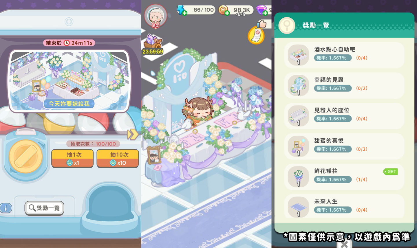 此外,研發團隊也釋出多項遊戲系統更新,包含主線劇情故事全新章節開放、限定婚禮主題轉蛋機「今天妳要嫁給我」、獎勵活動「店到殿倉儲派對」、顧客系統圖鑑新增等等。除了新增功能,團隊也積極傾聽玩家建議,於版本中進行了多項內容優化,未來會繼續努力為玩家帶來全新的遊戲體驗,攜手打造最有個性的《神明便利商店》!