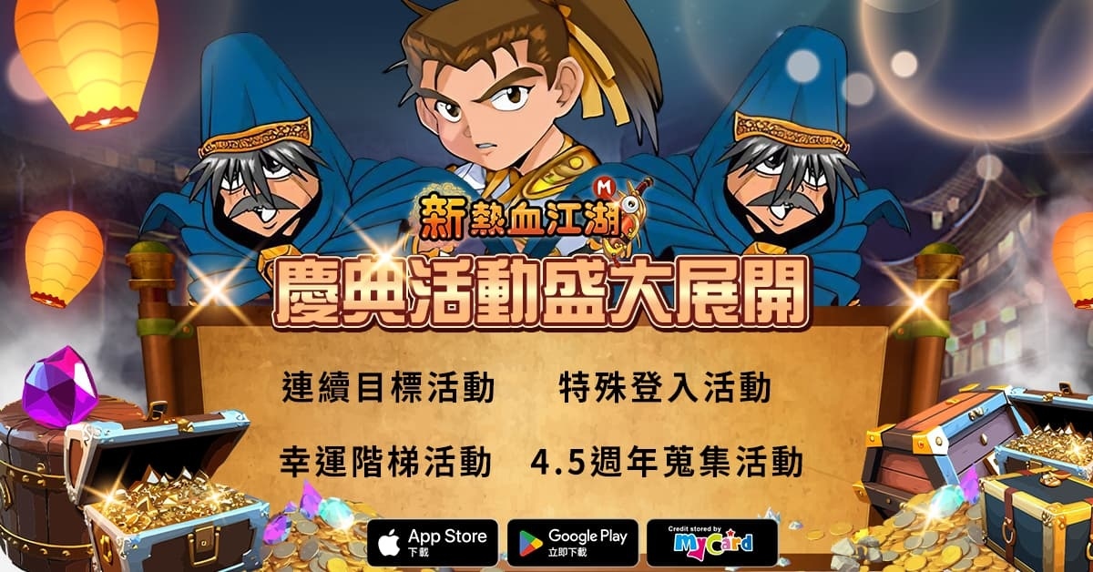 為回饋全體玩家的熱情支持,《新熱血江湖M》推出四大週年限定活動,一起參加就能獲得豐富好禮: