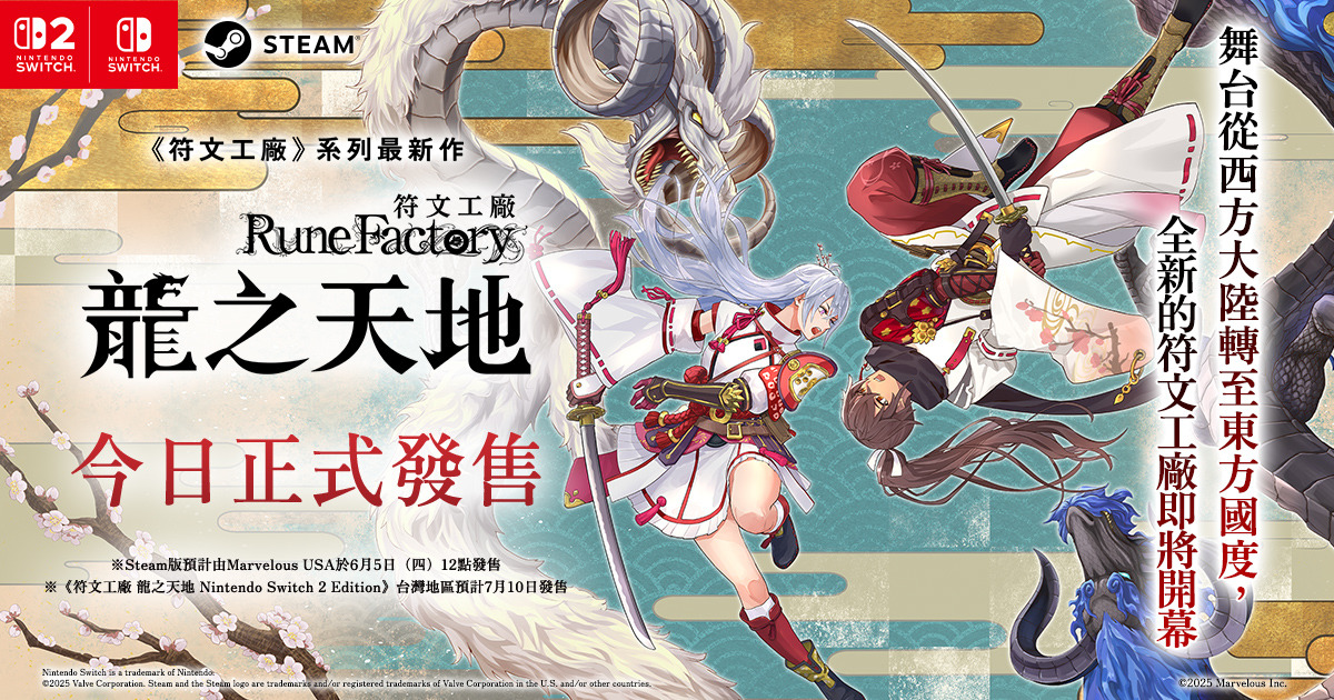 本作支援 Nintendo Switch 2、Nintendo Switch 及 Steam 平台。Steam 版本將在今日中午 12 點後正式上架。《符文工廠 龍之天地 Nintendo Switch 2 Edition》預計與台灣地區 Nintendo Switch 2 主機同步,在 7 月 10 日正式發售。