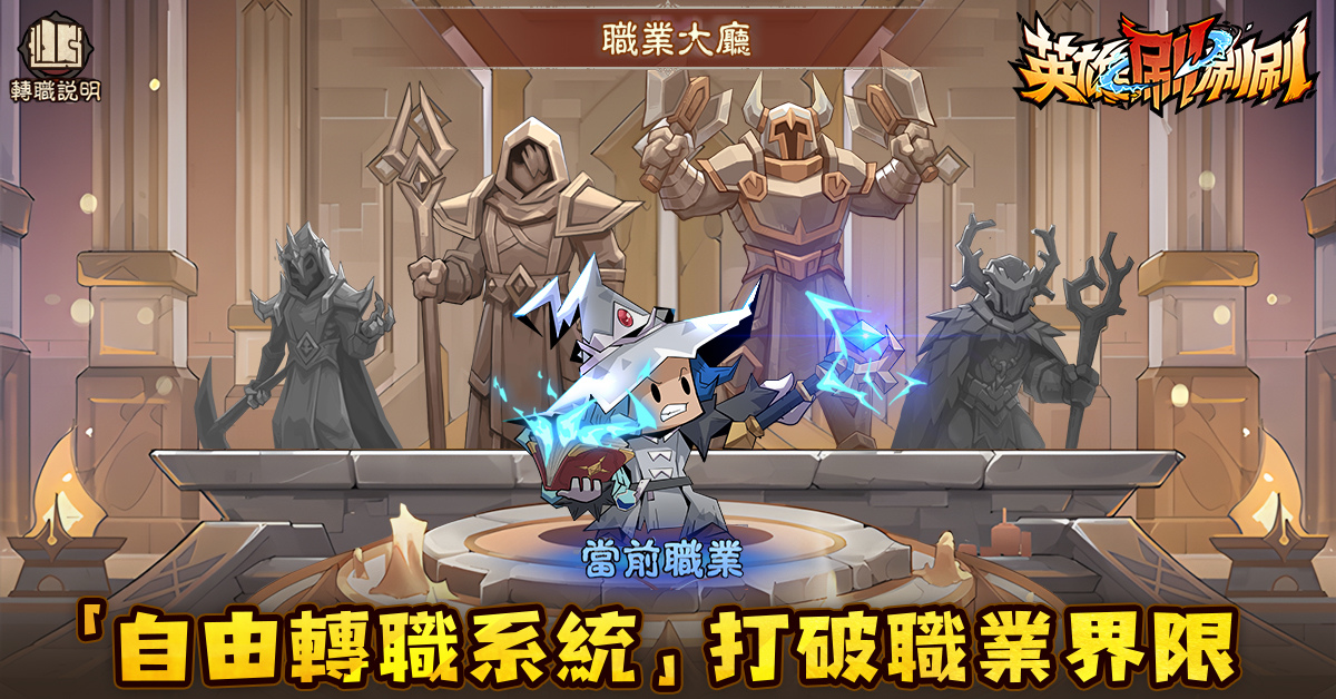 厭倦了單一職業的束縛?《英雄刷刷刷》全新「轉職系統」為您開啟多元成長之路!符合條件的勇士可自由切換職業,體驗不同戰鬥風格,同時保留部分核心進度,讓冒險之旅更加靈活多元!