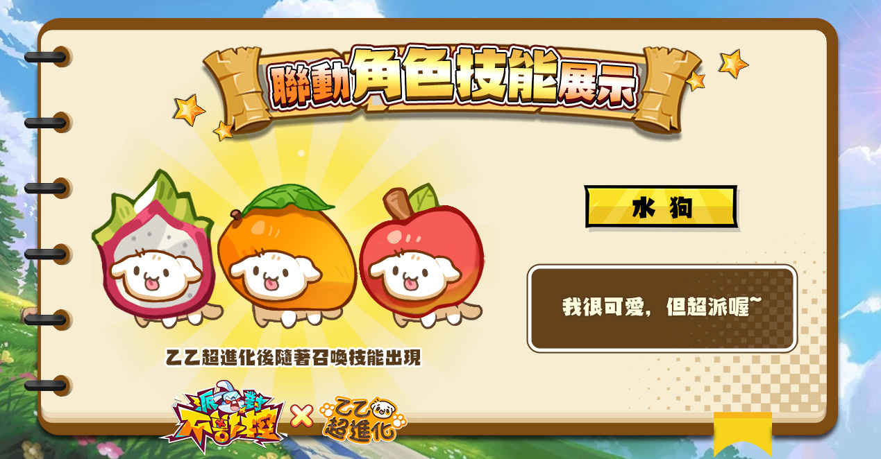 動物合體 PVP 狂歡手遊《派對不獸控》今日(6 號)起與台灣知名 IP「乙乙超進化」正式展開聯動合作,今日官方將釋出合作活動介紹及專屬獎勵,聯動期間為 2025 年 6 月 6 日起至 6 月 12 日止。