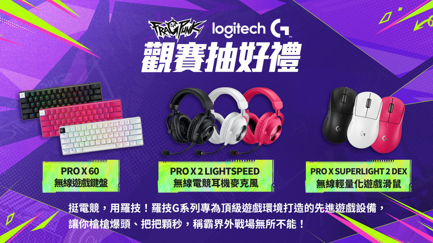 賽事期間敬請鎖定《FragPunk》官方直播,不只精彩賽事不間斷,只要在直播聊天室輸入每日應援關鍵字,即可參加抽獎活動,有機會將超人氣電競品牌 Logitech G 系列好禮及遊戲限定週邊商品帶回家!
