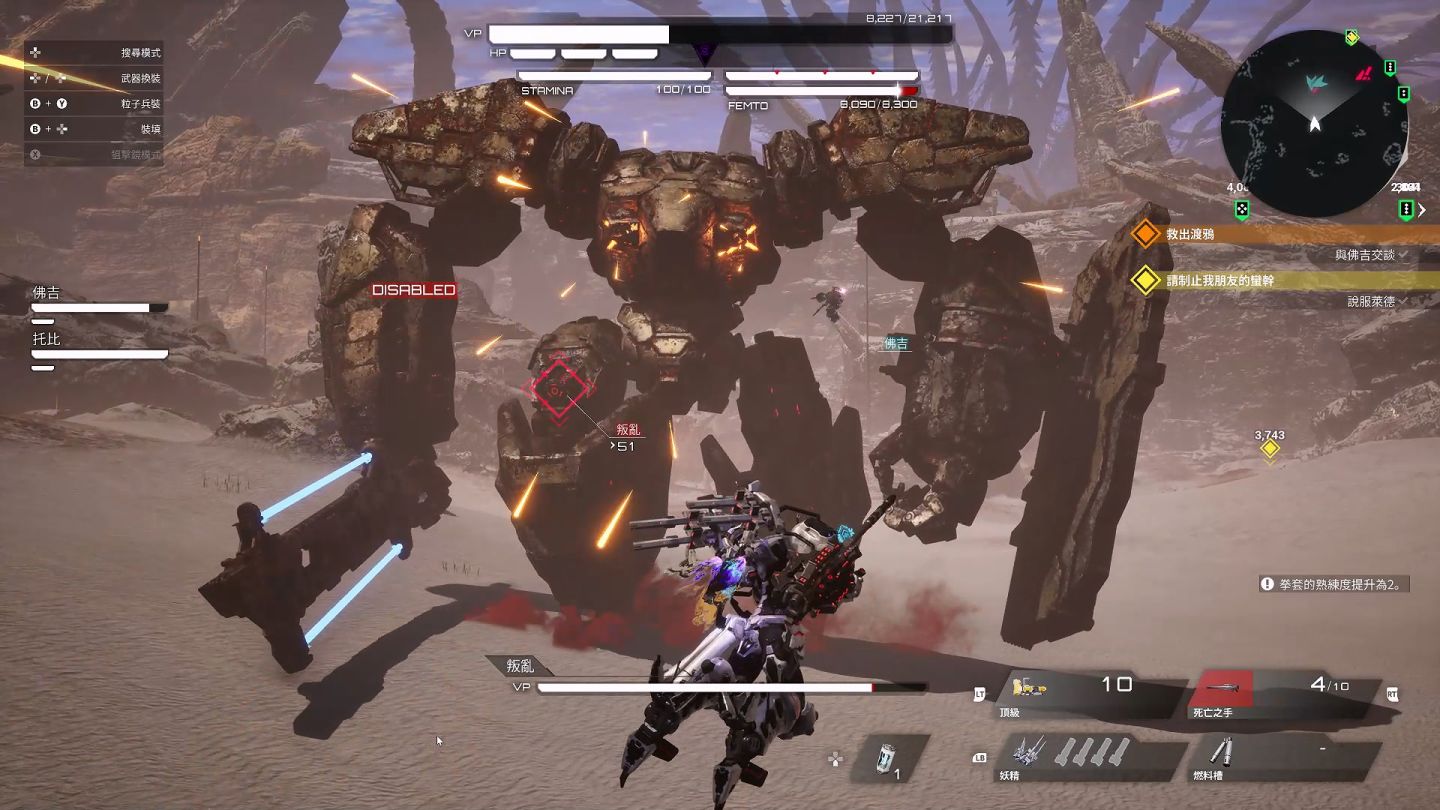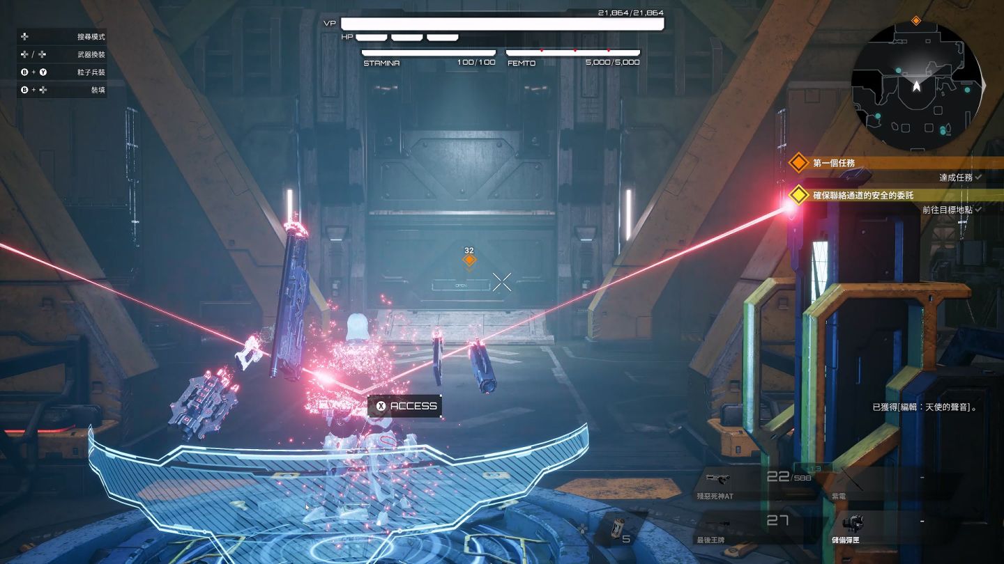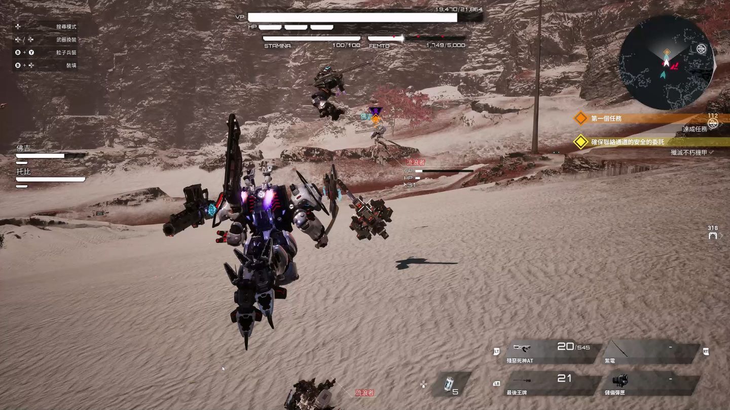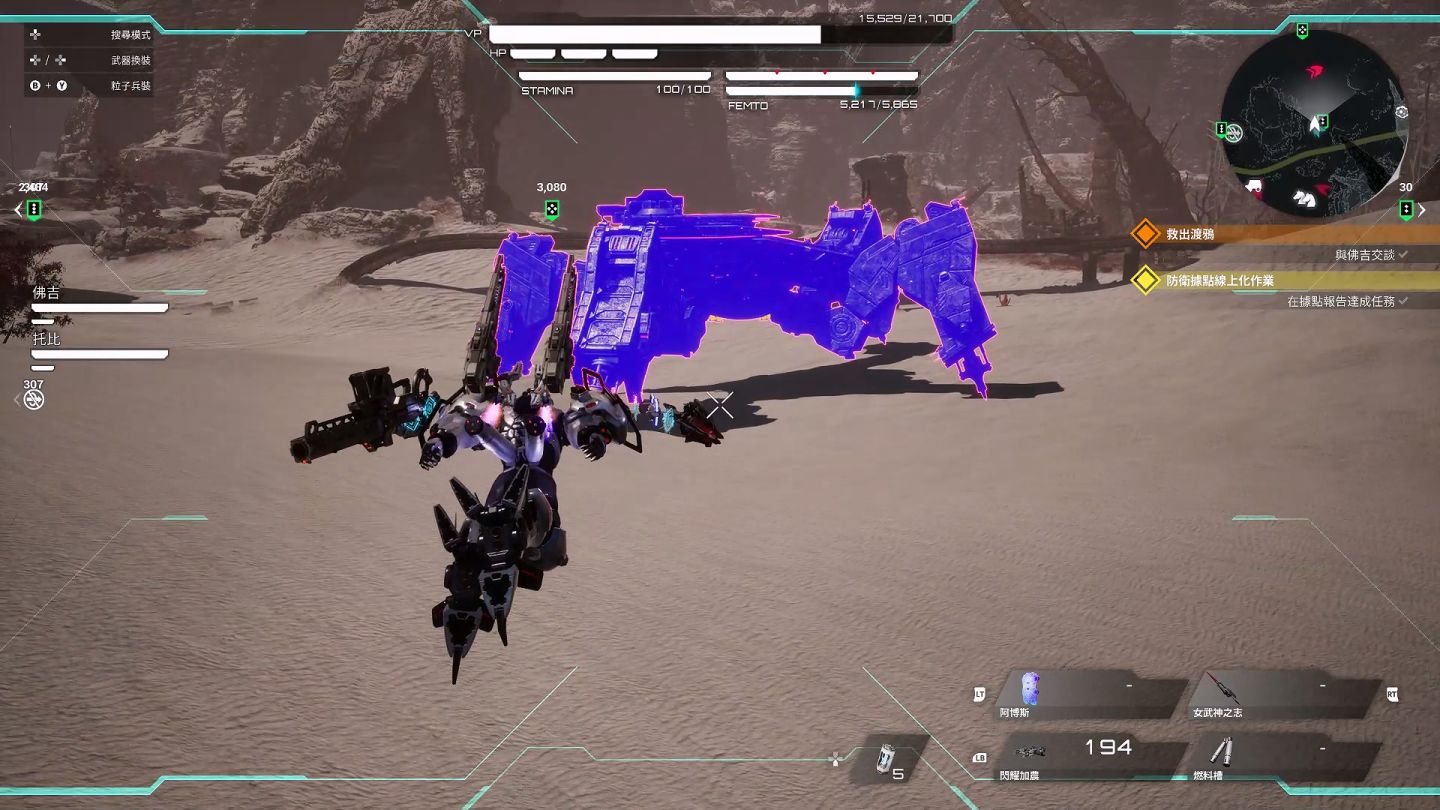 本次提供試玩內容包含設計機體和裝備、進行探索、完成任務。初步展現本作特色的機甲服設計、操作與戰術多樣性以及最大的特色在地面能在空中自由移動,並提供挑戰大型 Boss 的機會。