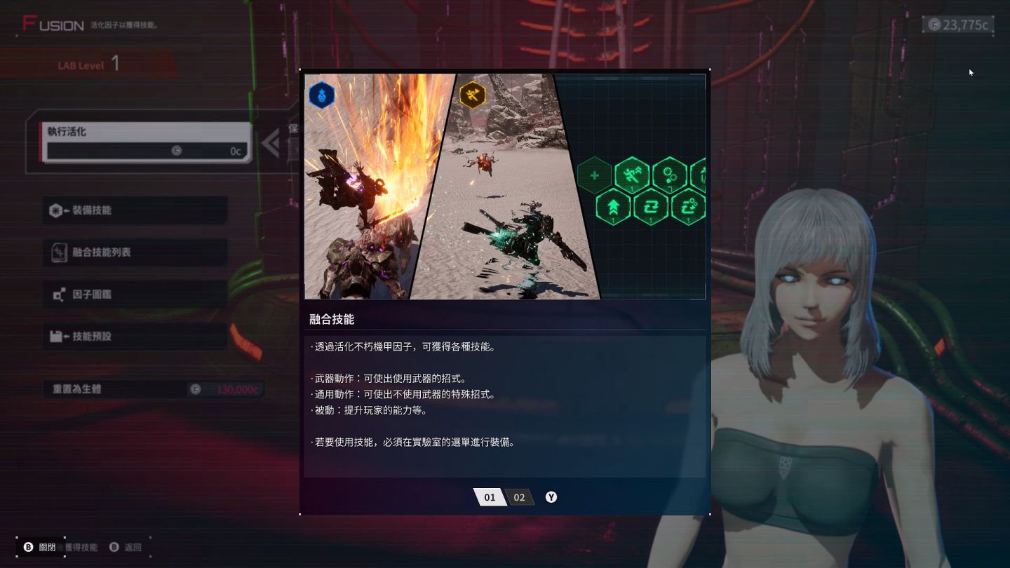 在主線劇情中,也揭露了主角本身作為「能力者」的特殊能力,在地圖中打倒不同的不朽機甲,可以獲得強化基因因子,能夠產生武器動作、通用動作、被動能力等進一步的強化。