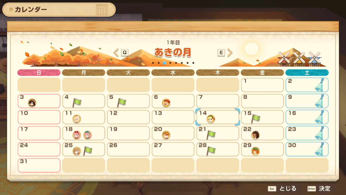 各項節慶的舉辦時間,都可以透過房間裡的日曆來查看。但節慶的舉辦時間可能會隨著年份而有所變動,所以別忘了要定期確認,提前做好準備,以免錯過參加的機會喔!